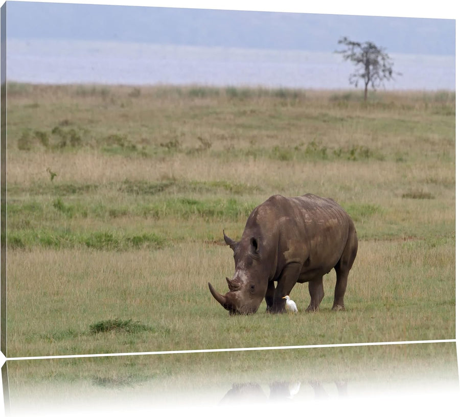 grosses Nashorn beim Fressen Leinwand, XXL riesige Bilder fertig gerahmt mit Keilrahmen, Kunstdruck