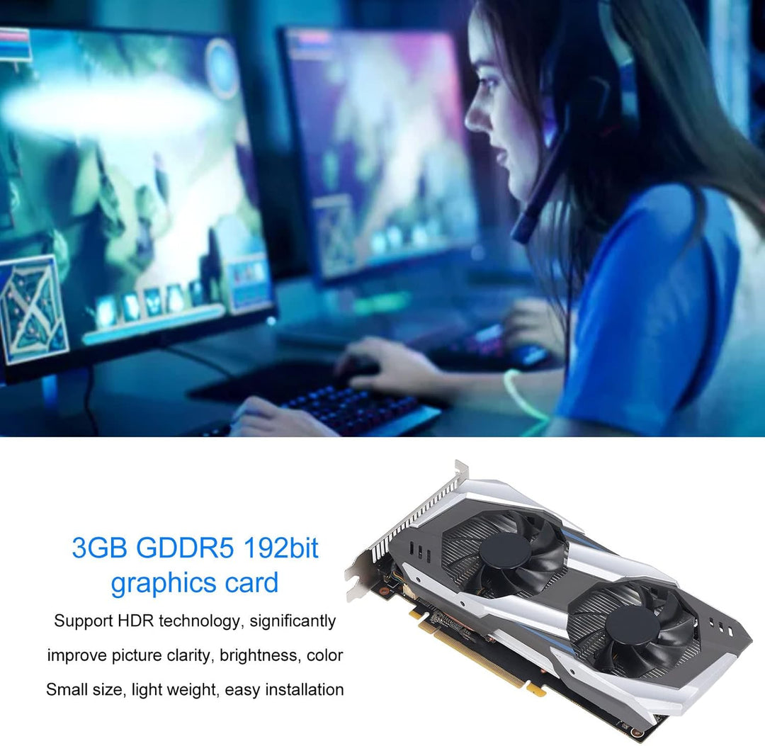- HOHE LEISTUNG: 3 GB GDDR5 192-Bit-Videospeicher-Grafikkarte, leistungsstarke Bildverarbeitungsfähigkeit, 1519 MHz Kernfrequenz, 8008 MHz Videospeicher-Hauptfrequenz.
