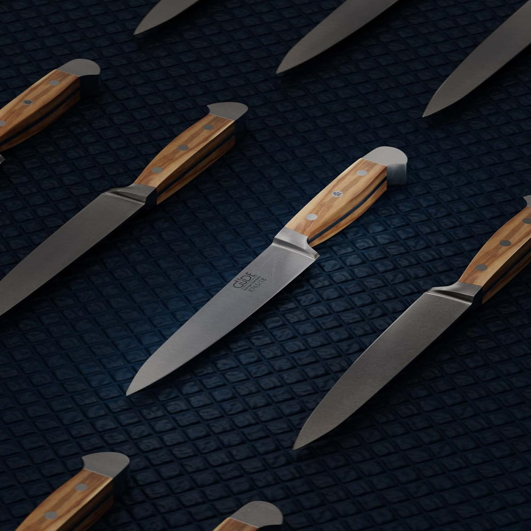 - Die Güde Alpha Olive Serie ist mit bis zu 500 Jahre altem Olivenholz gekleidet. Jedes Holz wurde sorgfältig ausgewählt, hat einzigartige Maserungen und eine eigene Geschichte. Das harte Holz ist perfekt für robuste Küchenarbeiten geeignet