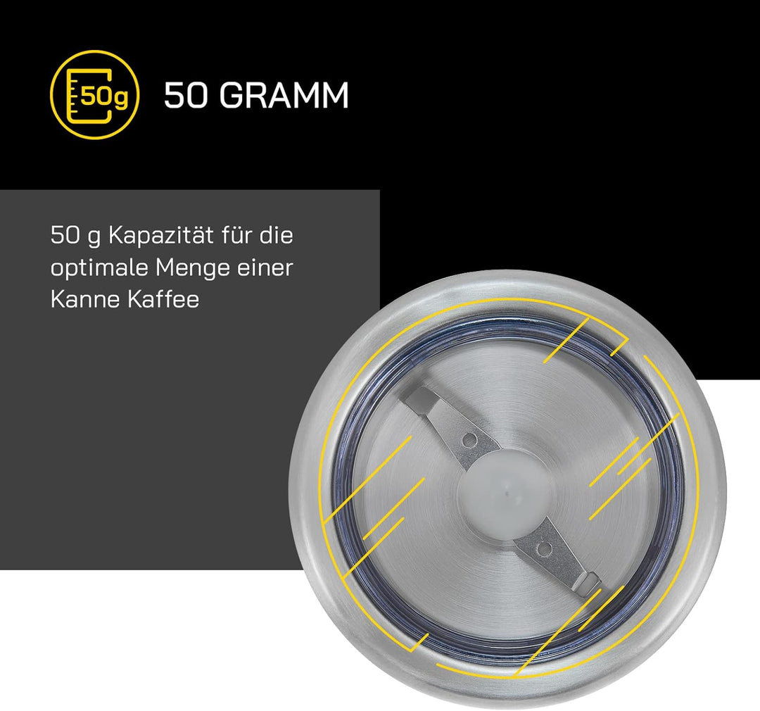 - 50 g Kapazität - optimale Menge für eine Kanne Kaffee
