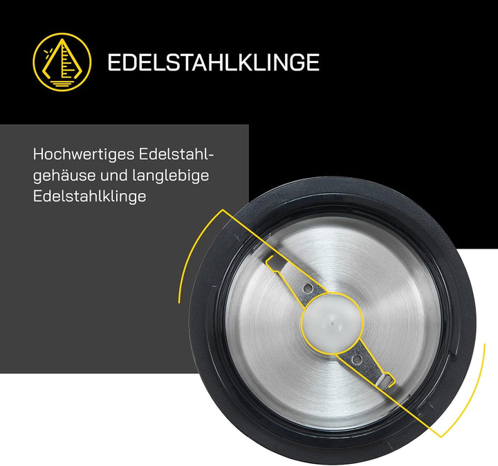 - Hochwertiges Edelstahlgehäuse und langlebige Edelstahlklinge