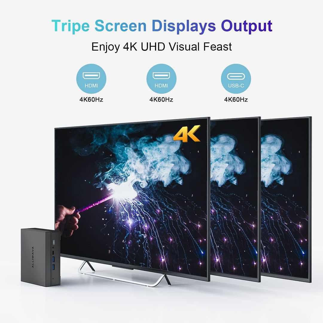 - W11 Pro and dual screen display: Installed Win11 Pro, can be compatible with W10. Ideal for various usage scenarios such as home, entertainment, office, online education, industry, etc.Dual HDMI and USB-C allows you to connect three monitors at the same