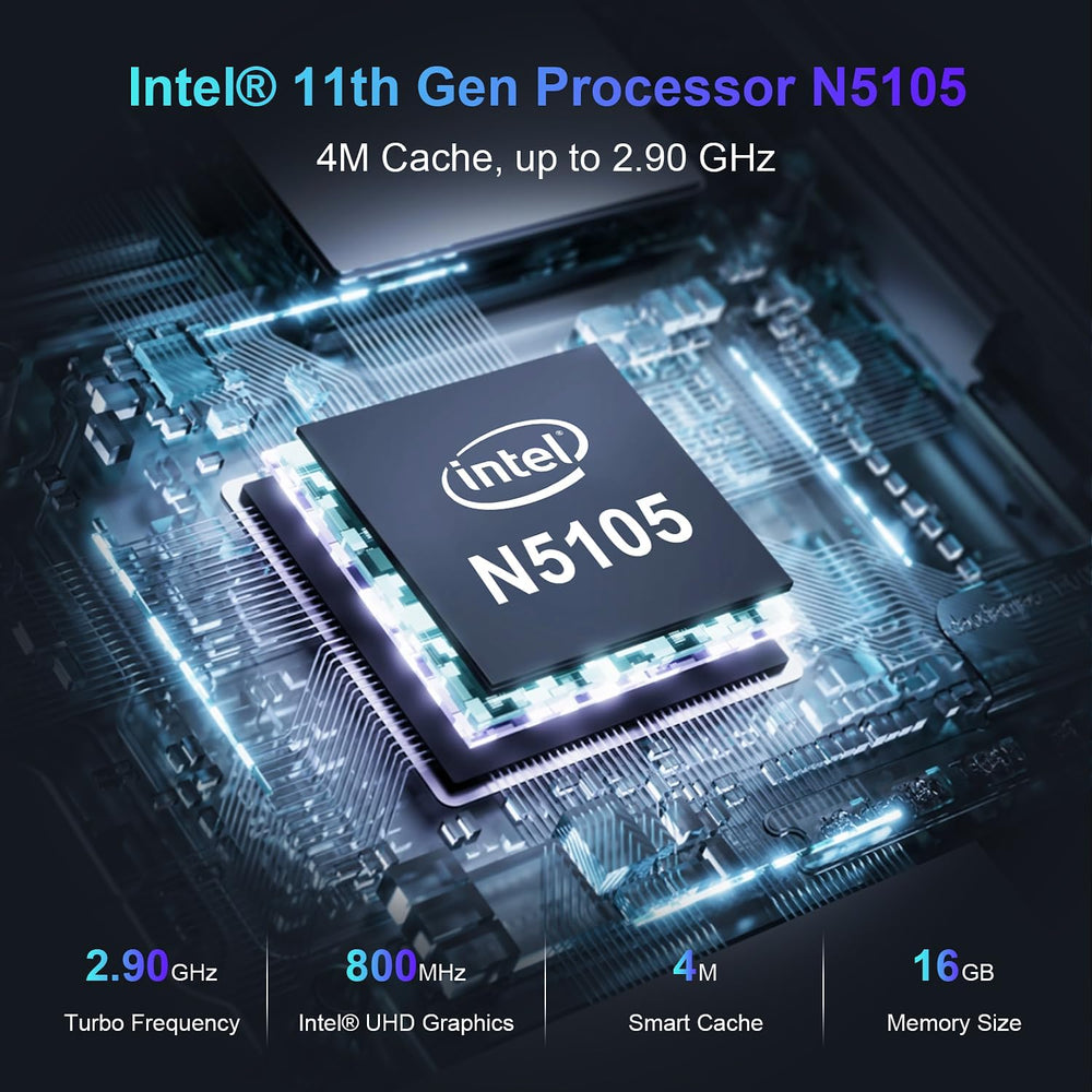 - Improved and newer mini PC: powered by processor N5105 of the 11th Generation (4C/4T, 4M cache, up to 2.9GHz), delivers incredible responsiveness and is smoother than J4125, J3455, J4205, N3455 etc. Faster and uses less power than the 2.5GHz N5095.