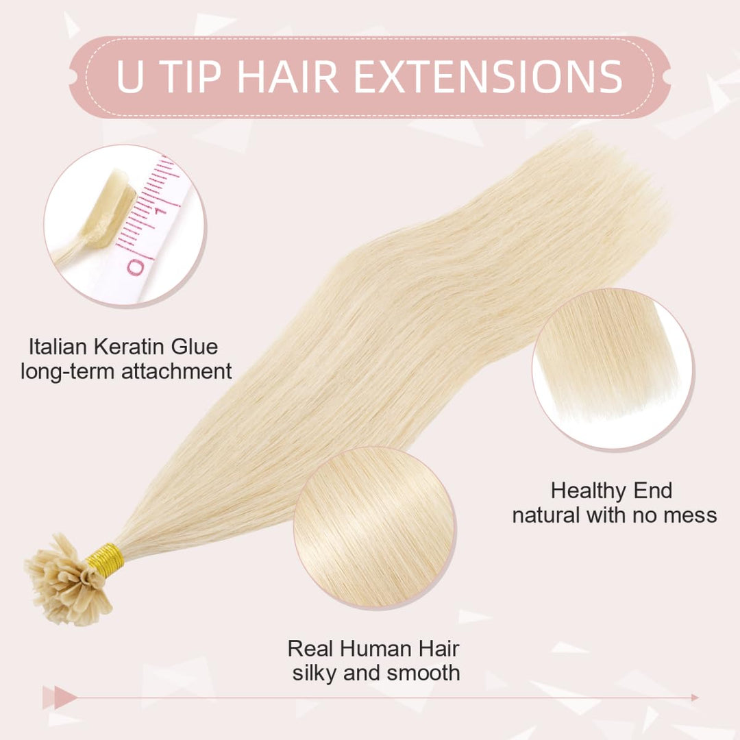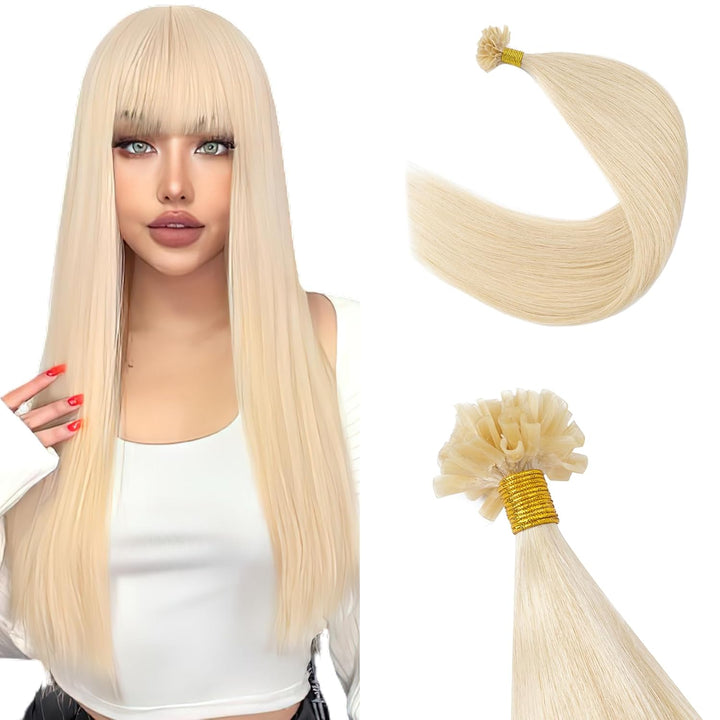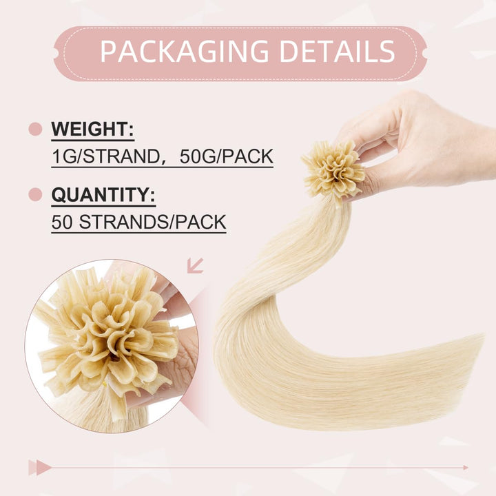 - KERATIN U TIP: Die verklebten Enden bestehen aus ausgezeichnetem italienischen Keratin-Klebe, es ist durch heisse Fusion installiert. Ein spezielles Lösungsmittel ermöglicht es Ihnen, das Keratin-Haarteil leicht zu entfernen.