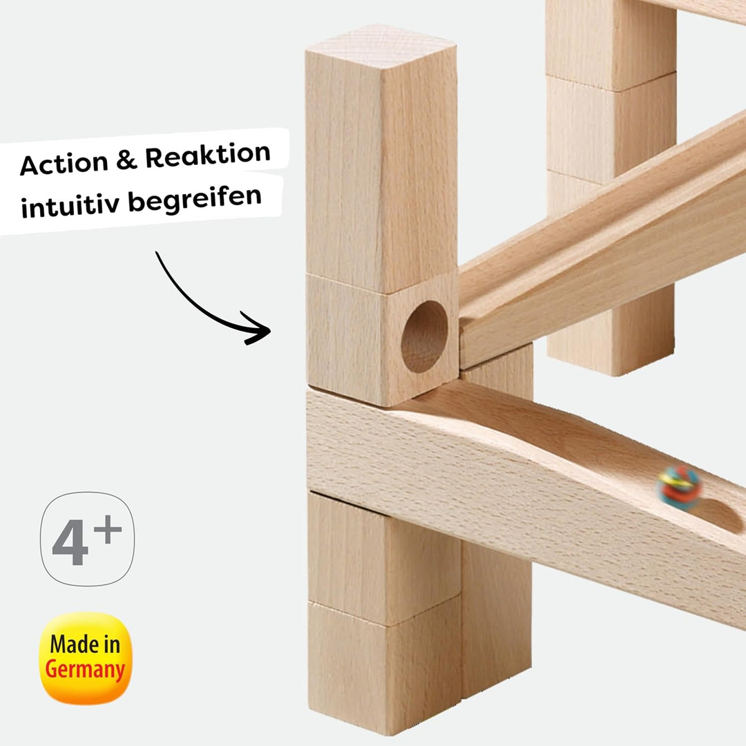 - Verbaubar mit allen Grundpackungen und Ergänzungssets der HABA-Kugelbahn
