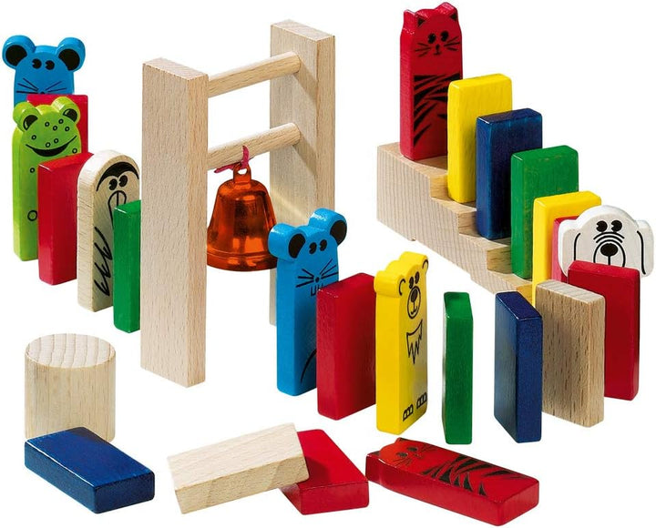 - 240 dominos (mit tierdominos), glockenturm und holzkltzen für die schaffung von plattformen fantasievolles und kreatives spielen spa, domino-rennen zu sehen