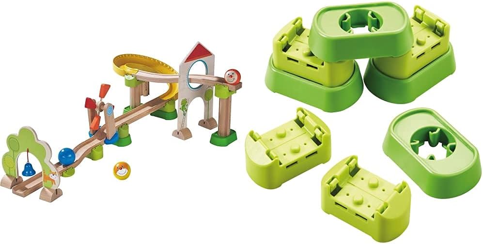 HABA 300438 - Kugelbahn Kullerbü - Windradbahn & 300849 - Kullerbü – Ergänzungsset Verbinder und Bas