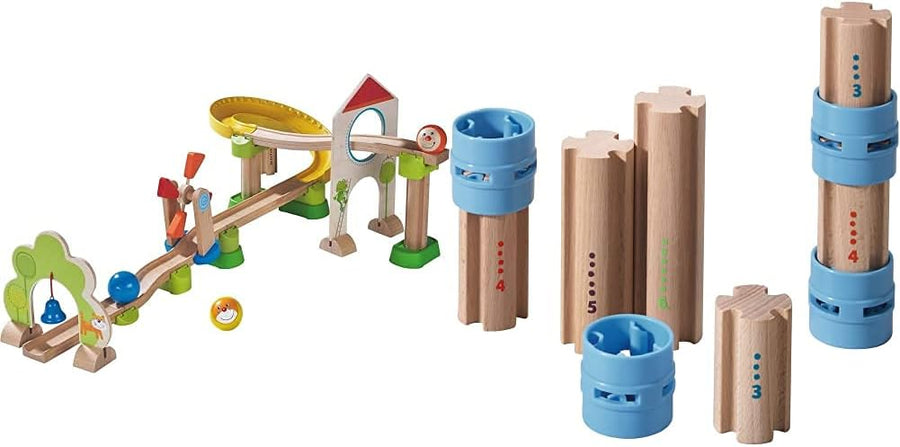 HABA 300438 - Kugelbahn Kullerbü - Windradbahn & 300850 Kullerbü Ergänzungsset Säulen Bundle mit Säu
