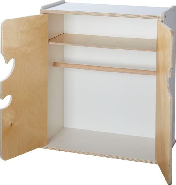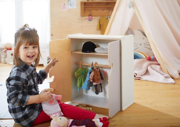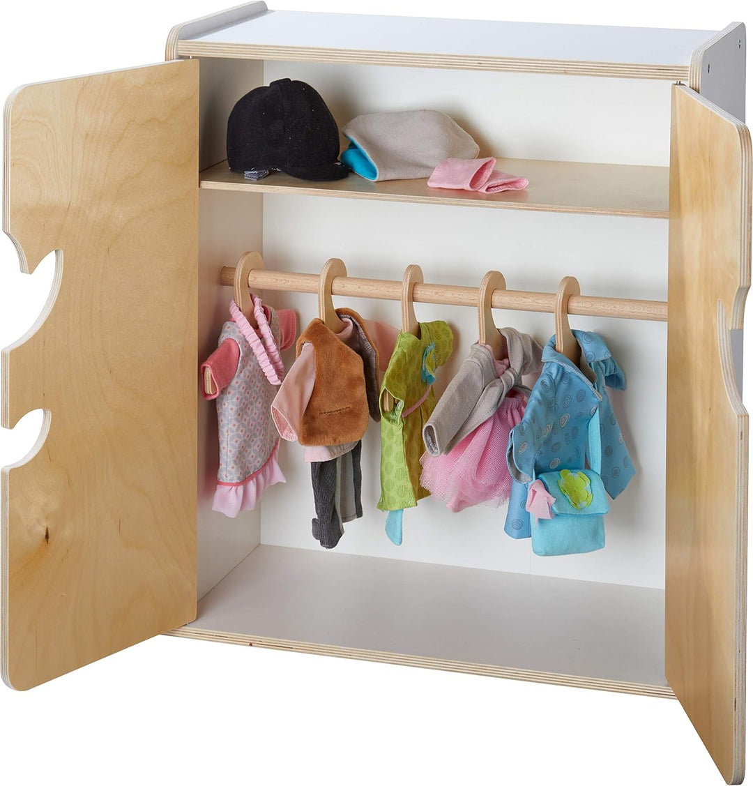 - Der wunderschön gestaltete Puppenschrank ist mit 1 Einlegeboden, 1 Stange und 3 Kleiderbügeln ausgestattet und bietet Puppeneltern ab 18 Monaten viel Platz für die Kleidung ihrer Lieblinge