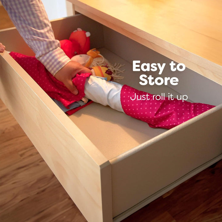 - Flexibel in verschiedenen Türrahmen fixierbar und platzsparend verstaubar