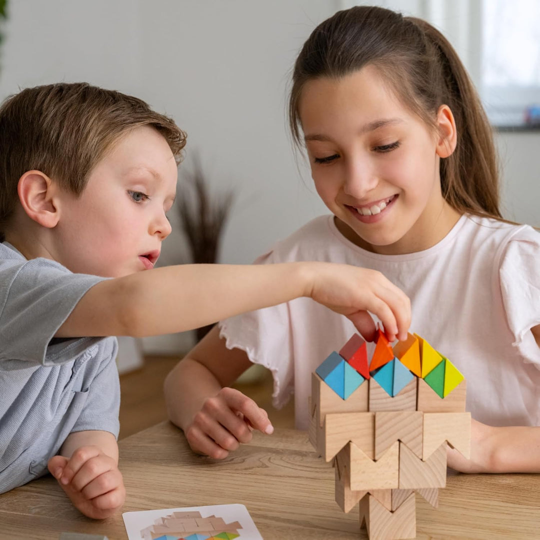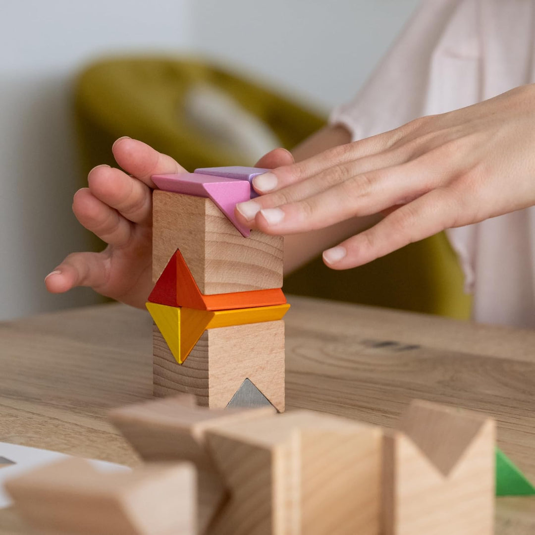 - KREATIVITÄT & RÄUMLICHES DENKEN: Kinder entdecken spielerisch Farben, Formen und physikalische Zusammenhänge beim Bauen, Stapeln und Kombinieren.