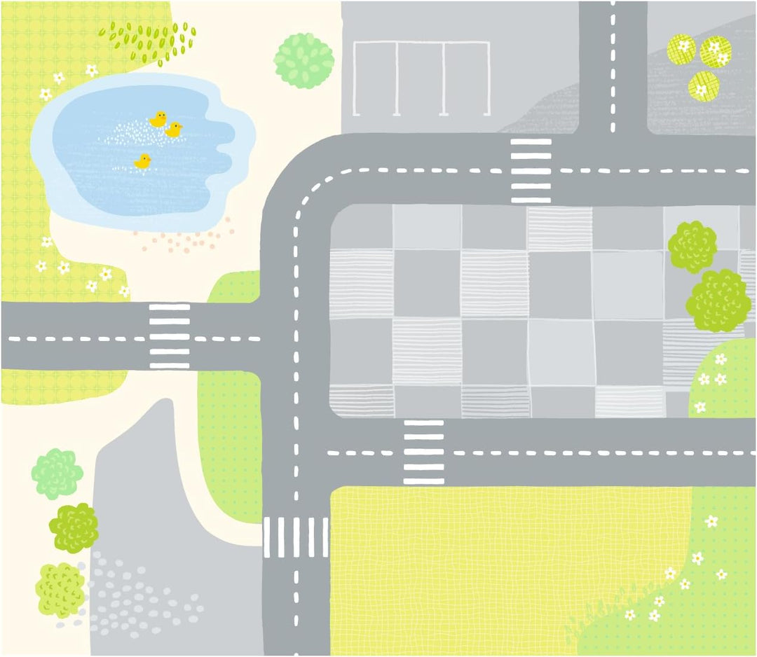 - Aus sechs Puzzleteilen entsteht eine Landschaft als Unterlage für eine Kulisse aus Holz-Bausteinen