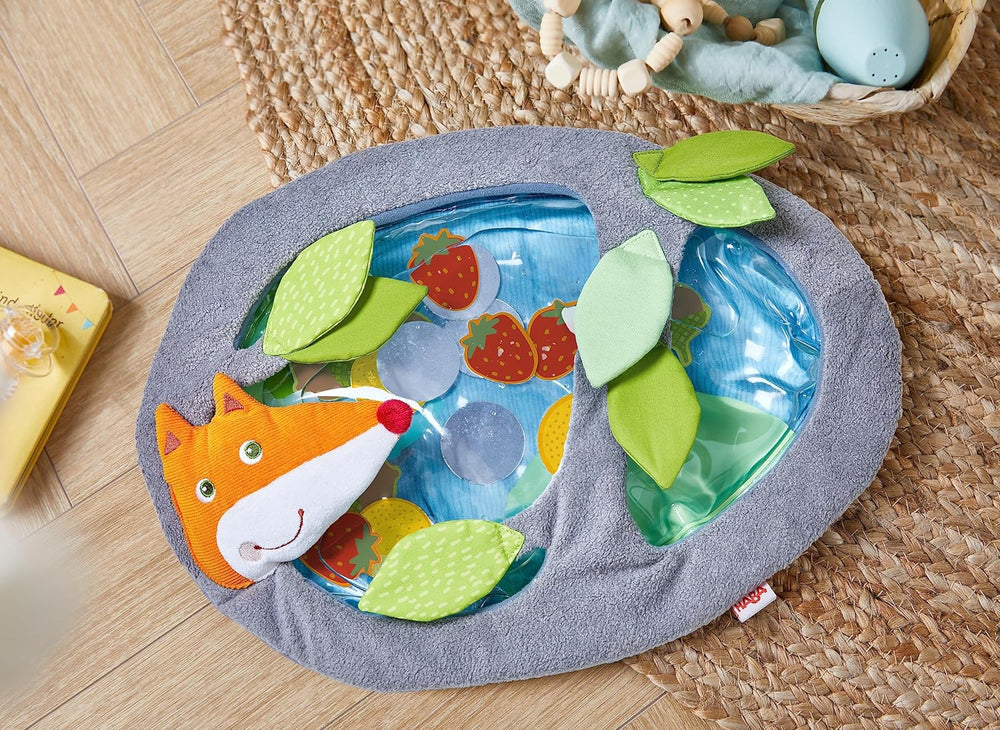 - Die Wasserspielmatte für Babys steckt in einer waschbaren, weichen Stoffhülle mitrasselndem Fuchs-Kopf und knisternden Blättern