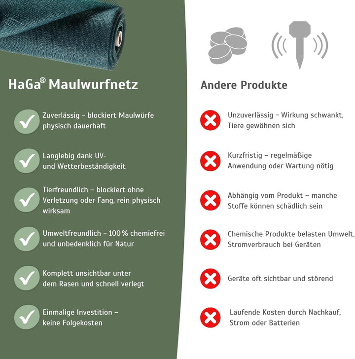 - Maulwurfnetz ist eine humane und umweltfreundliche Alternative zu chemischen Mitteln oder Fallen, da es die Tiere nicht verletzt oder tötet.