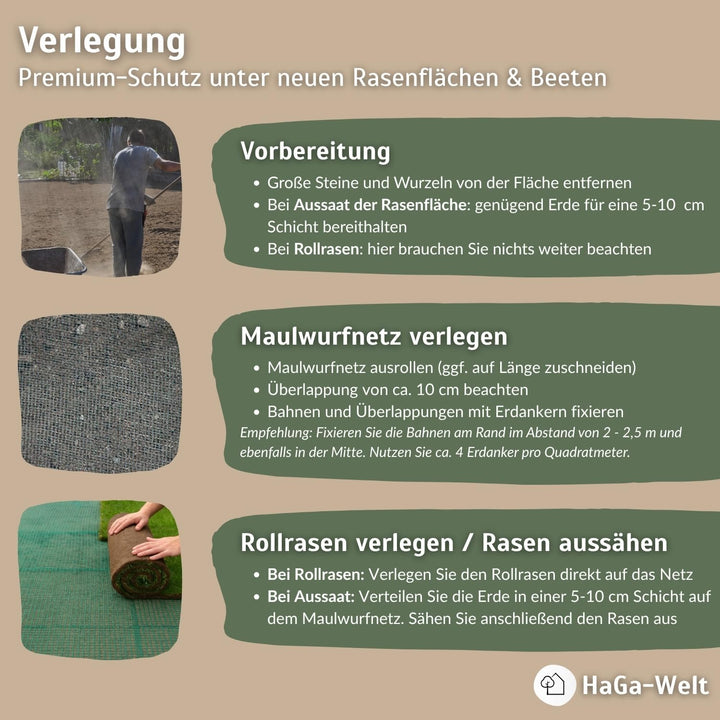 - Es verhindert, dass Maulwürfe das Erdreich aufgraben und dadurch den Rasen beschädigen.