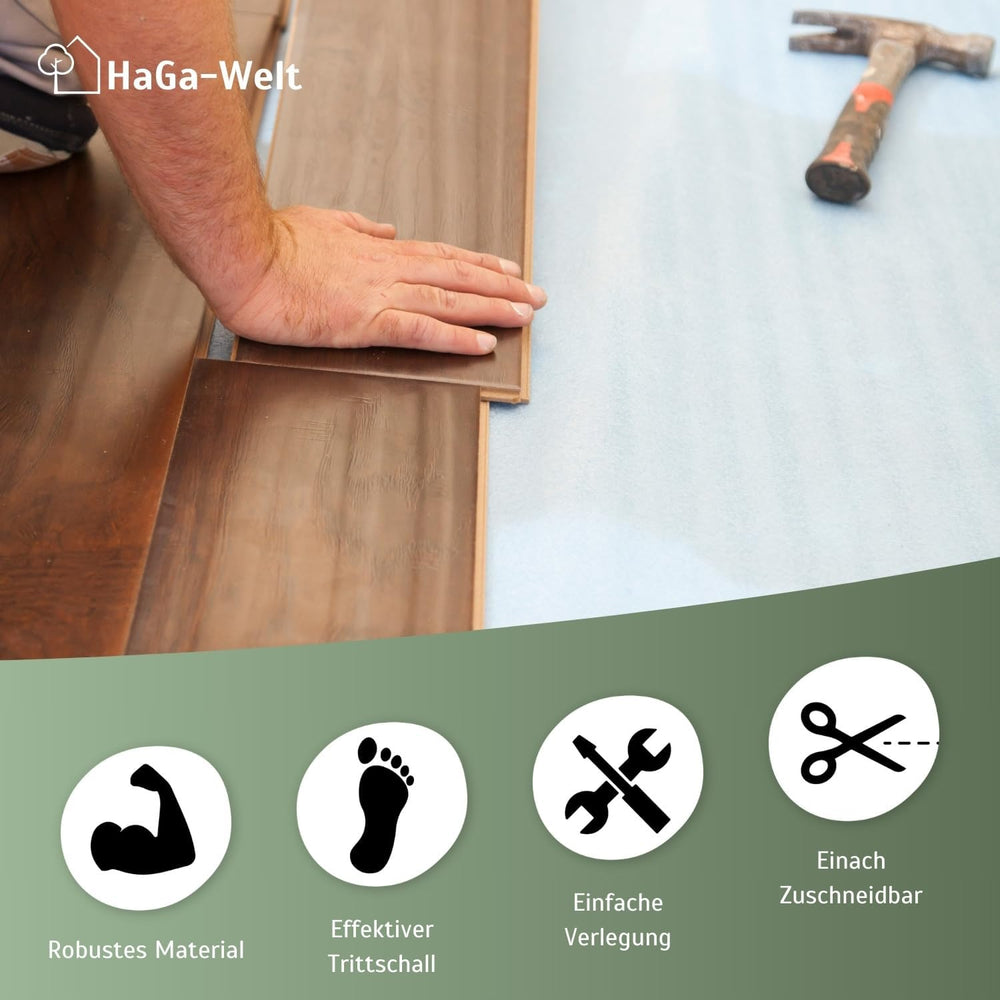 - VERBESSERTE RAUMAKUSTIK: die HaGa Trittschalldämmung schützt nicht nur Vinyl-, Laminat- und Holzböden, sondern verbessert auch die Raumakustik.