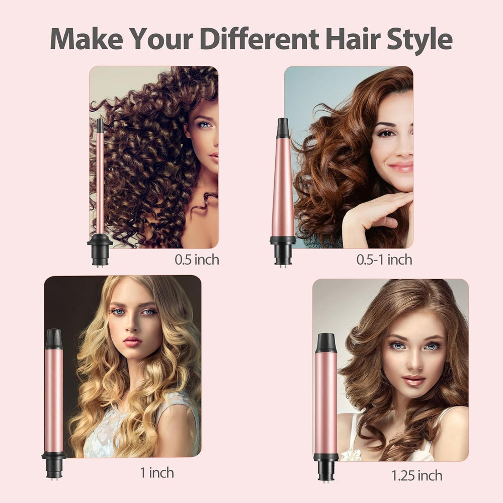 • Lockenstab Set 4 in 1: Lockenstab mit verschiedenen aufsätzen set, enthält 4 austauschbare:(zylinder 32mm, konische 19-32mm, zylinder 25mm, zylinder 9mm) . Sie werden das Vertrauen geniessen, das Ihnen dieses Lockenstab Set gibt. Sie müssen nicht in