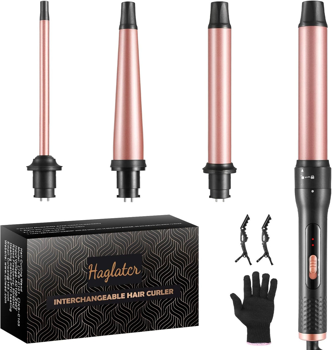Haglater Lockenstab 4 in 1 Multifunktions Austauschbare Keramikbeschichtung Curling Iron, Lockenstäb
