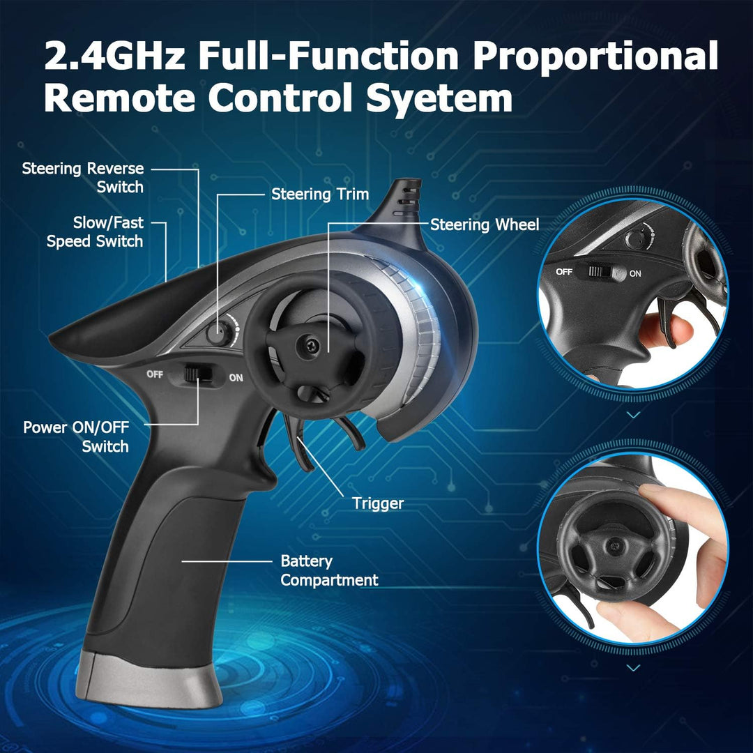 - 【2,4GHz Funksteuerung und IPX4 ferngesteuertes auto wasserdicht】 2,4-GHz-Vollsynchronfernsteuerungssystem. Vollgas / Lenkung. 60-80 Meter Kontrollentfernung.Sie und Ihre Freunde können den Buggy störungsfrei fahren und treiben lassen. IPX4 Level