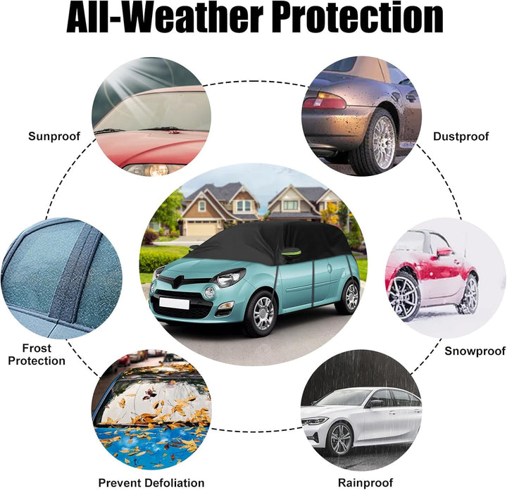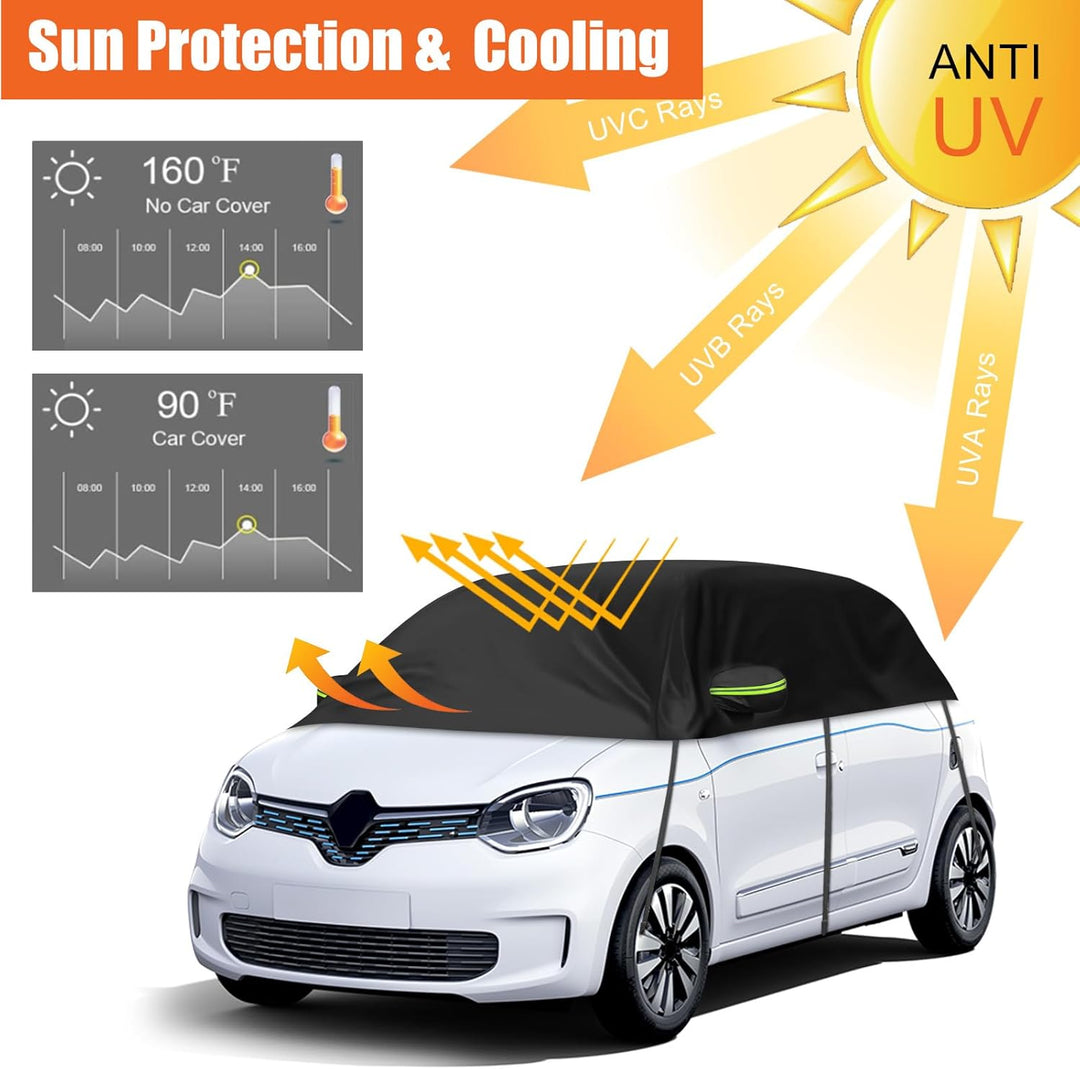 - Rundumschutz: Deckt Windschutzscheibe, Seiten-/Heckscheiben, Rückspiegel ab und schützt Ihr Auto vor Schnee, Frost, Vogelkot, UV-Strahlen, Regen, Staub usw. Ob heisser Sommer, rote Blätter im Herbst oder starker Schneefall im Winter, die