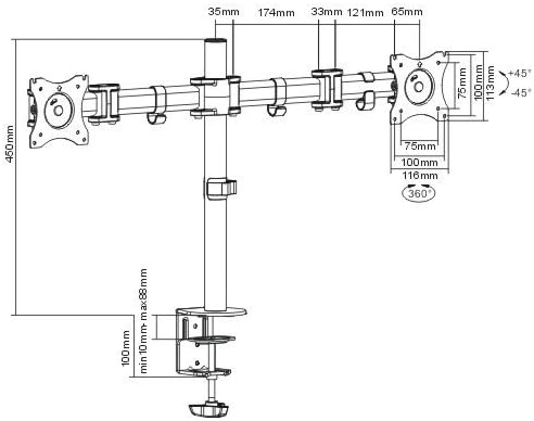• Inkl. Montage-Set und Schrauben für die Befestigung der Monitore. Die Halterung kann auch mittels Tischlochmontage befestigt werden