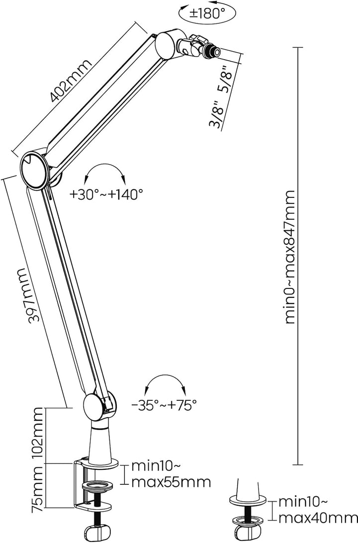 - ABSOLUTE FLEXIBILITÄT: 360° Verstellbarkeit sorgen für die perfekte Position des Mikrofons, sodass es nicht im Weg ist. Das Kugelgelenk kann stufenlos festgezogen werden, so bleibt das Mikrofon je nach Belieben vollständig starr oder leicht beweglich.