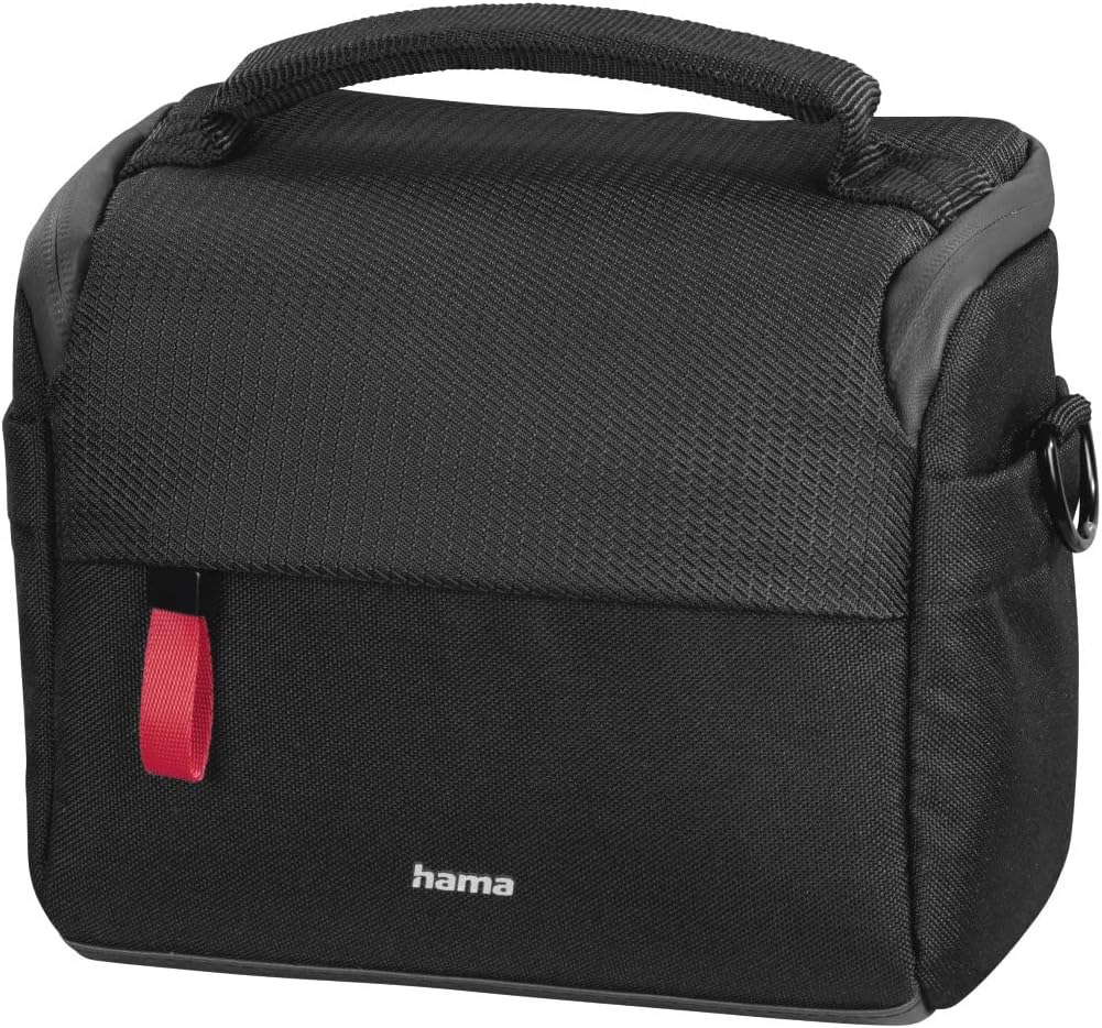PRODUKTBESCHREIBUNGEN Hama Kameratasche "Matera" 110 (kompakte Fototasche für Gürtelschlaufe, Kameratasche für Digitalkamera und Zubehör, Umhängetasche mit Schultergurt und Zubehörfächern, recyceltes PET) schwarz Für alle, die mit ihrer Kamera gern unterwegs sind - die gepolsterte Fototasche aus strapazierfähigem Polyester schützt Ihre Kamera zuverlässig vor Schmutz und Feuchtigkeit. Batterien und Speicherkarten finden Platz in den Taschen unter dem Deckel, weitere Kleinigkeiten können im vorderen Reissverschlussfach oder in den beiden Seitentaschen untergebracht werden. Super für unterwegs - die Kameratasche bietet verschiedene Tragemöglichkeiten: Mit der Gürtelschlaufe lässt sie sich wie eine Bauchtasche tragen oder mit dem Tragegurt einfach über die Schulter hängen. Dieser kann mittels Karabiner bei Bedarf abgenommen werden. Der gepolsterte Tragegriff ermöglicht ebenso ein bequemes Tragen in der Hand. Über den Doppelreissverschluss kommt man schnell ins Hauptfach und damit an die Kamera heran. Der Innenbereich kann durch den verstellbaren Inneneinteiler individuell unterteilt werden, so dass neben der Kamera auch weiteres Zubehör, wie z. B. Objektiv und Mini-Stativ, Platz findet. Durch das kompakte Design und das geringe Gewicht von 250 Gramm ist die Tasche der optimale Reisebegleiter. Dabei ist sie nicht nur praktisch, sondern auch besonders ressourcenschonend hergestellt, denn sie besteht aus recyceltem Polyester. Technische Details Farbe: Schwarz Farbton: Schwarz Produktbereich: Foto & Video Serie: Matera Ausführung: Softcase Ausstattung: Verstellbarer Schultergurt Material: Recycled Polyester (R-PET) Gewicht: 250 g Grössencode: 110 Innenmass B x T x H: 15,5 x 10 x 13 cm Geeignet für: Foto Verwendungszweck: Foto