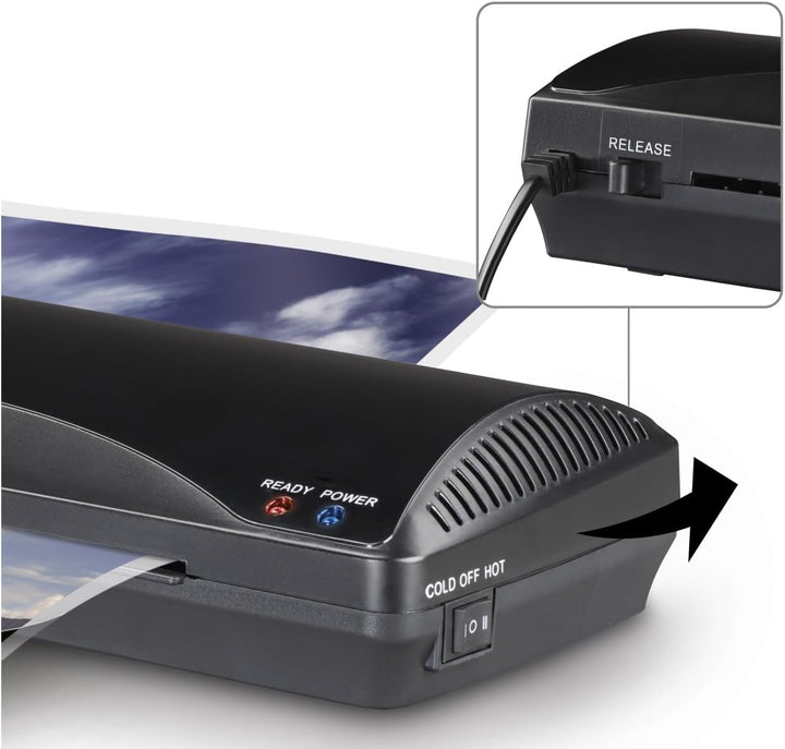 - Plastifiziermaschine: Ein Laminiergerät für schnelles und sicheres Laminieren in hoher Qualität: 3-4 Minuten Aufwärmzeit, Überhitzungsschutz, ABS Entriegelungstaste zum Beheben von Folienstau