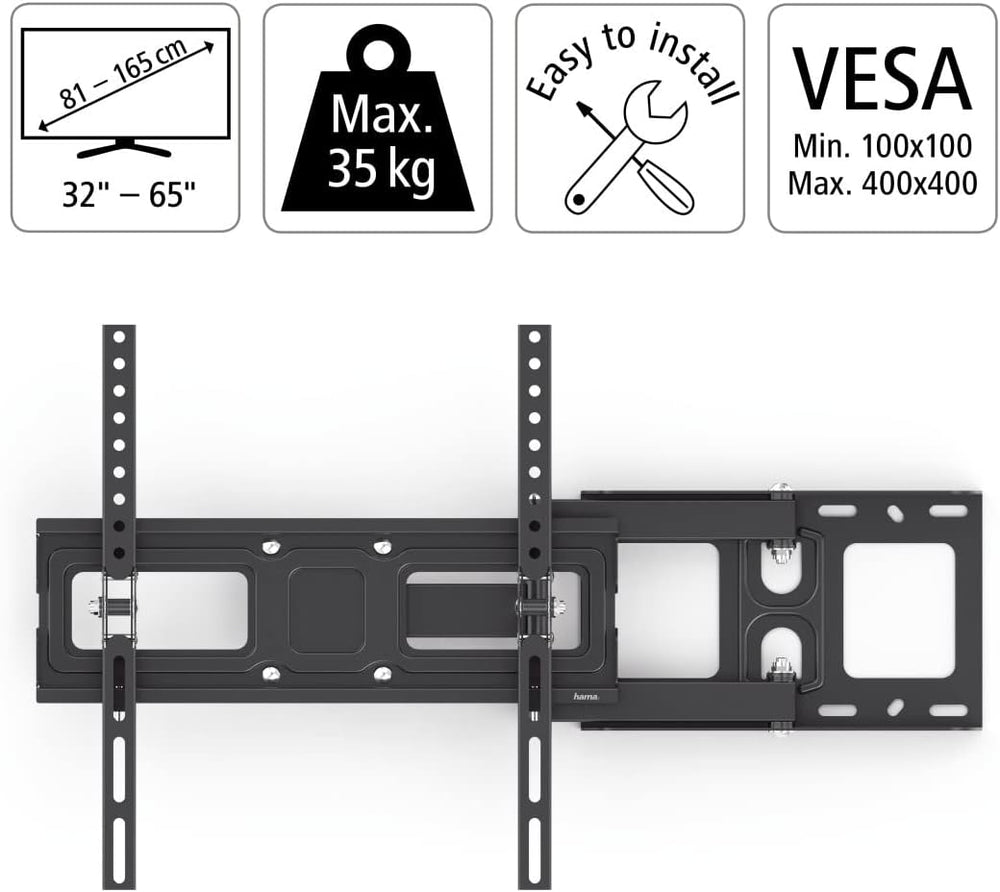 - Vollbewegliche TV-Wandhalterung für den besten Blickwinkel: Bis zu 180° schwenkbar, bis zu +/-15° stufenlos neigbar, auf bis zu 42,5 cm ausziehbar