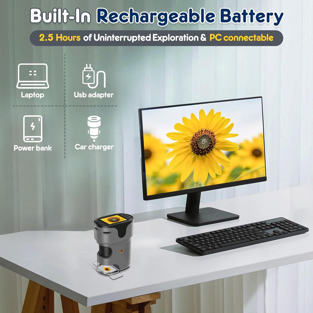 - 【Wiederaufladbar】Unser digitales Mikroskop eingebaut mit wiederaufladbarem Akku mit grosser Kapazität. Kann nach vollständiger Aufladung 2,5 Stunden lang ununterbrochen verwendet werden, das Ladekabel ist im Lieferumfang enthalten.