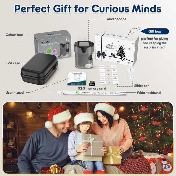 - 【Geschenkbox】Eine Geschenkbox wurde an der Aussenseite der Farbbox des Produkts hinzugefügt. Schützen Sie nicht nur das Mikroskop und die Objektträger besser, sondern halten Sie auch die Überraschung.