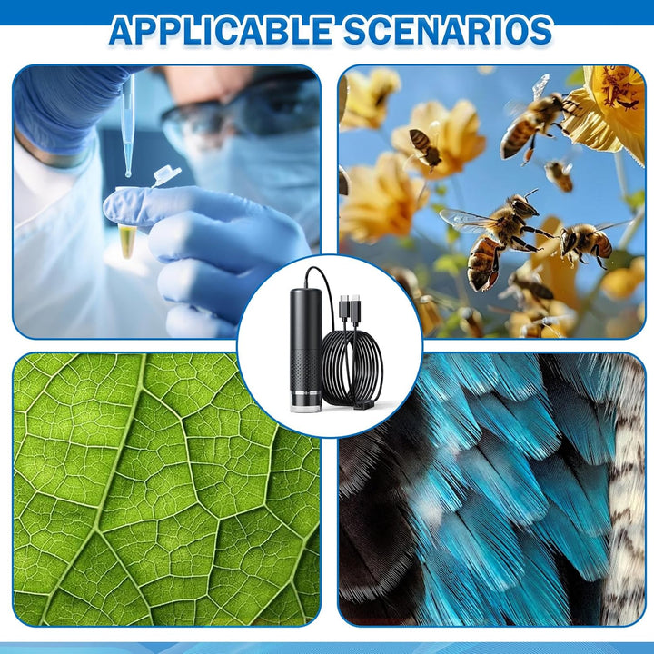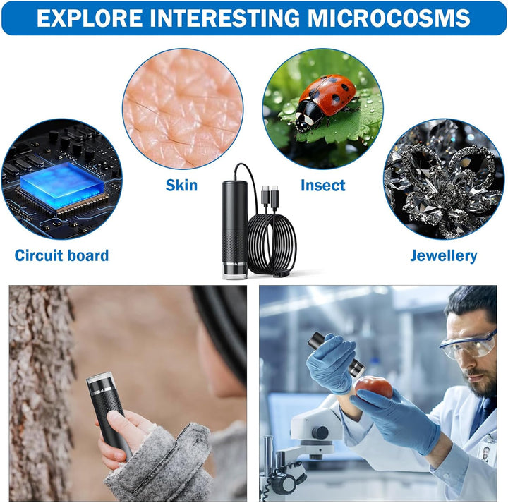 - 【Entdecken Sie die Mikroskopische Welt】 Mikroskop handy ist sehr gut geeignet für Kinder, Lehrer, Studenten und Sammler, die neugierig auf die mikroskopische Welt sind, und kann für Haut, Haare, Pflanzen, Insektenproben, Edelsteine, Drucke usw.