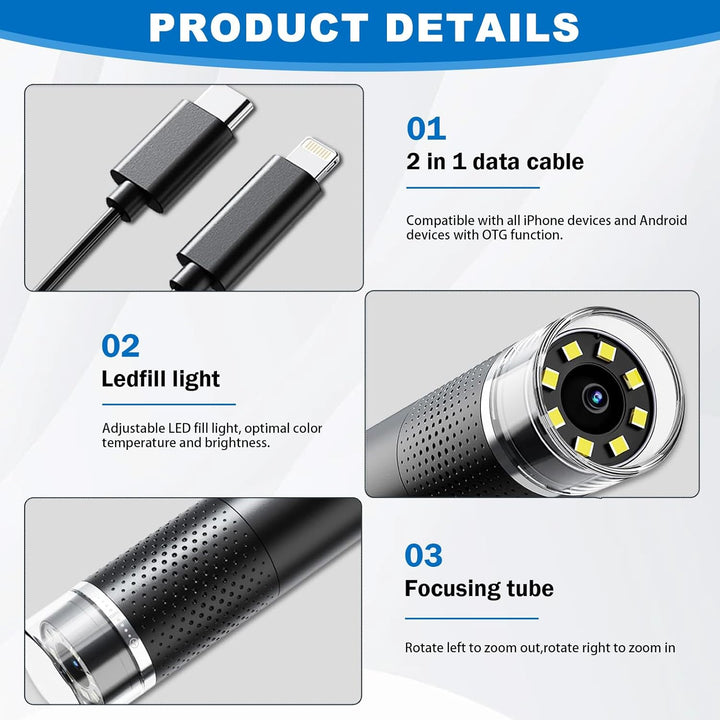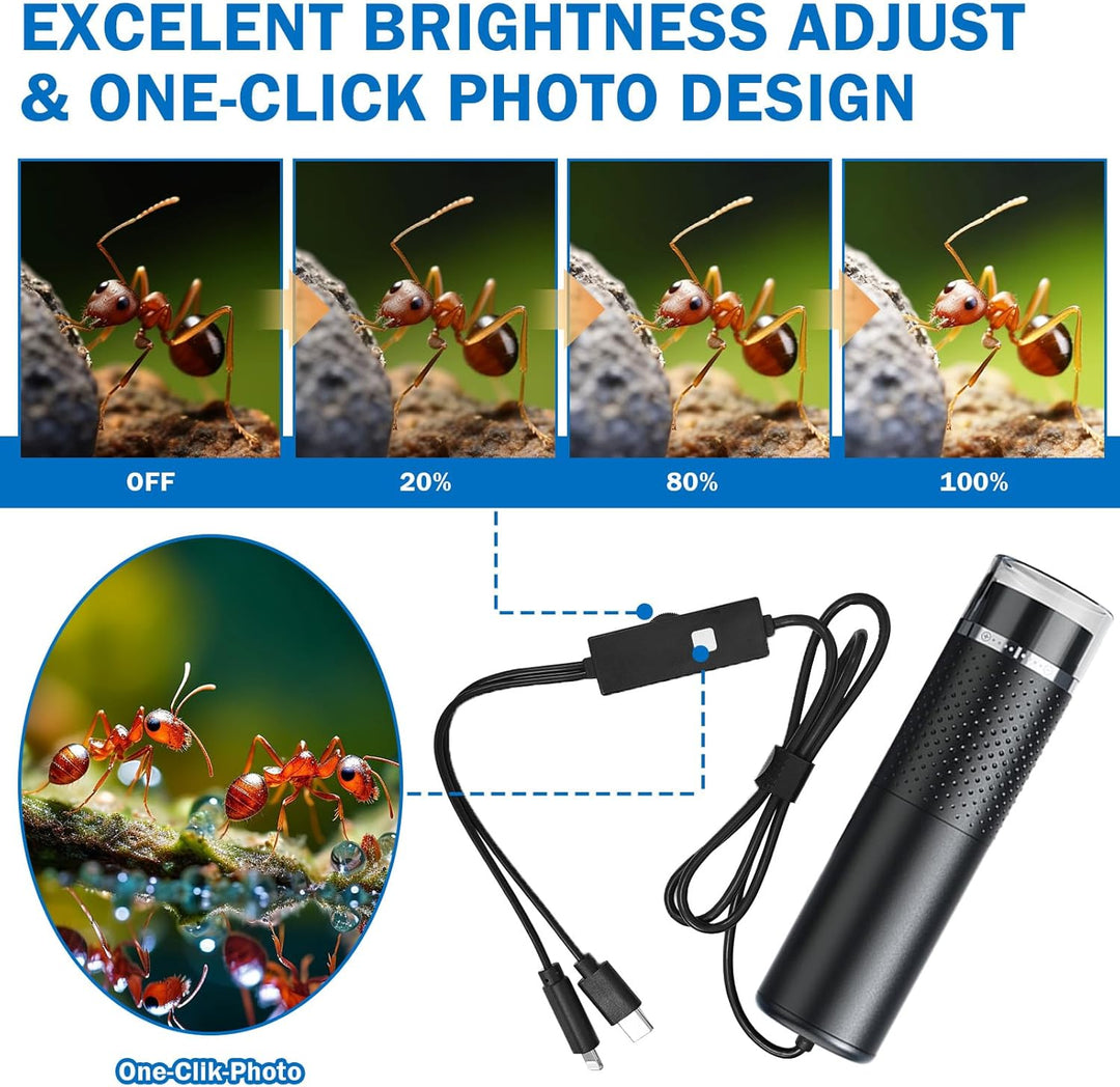 - 【LED mit Beleuchtung】 Mini mikroskop Smartphone ist mit 8 LED-Leuchten, 3 Helligkeitsstufen und weichem und hellem Fülllicht ausgestattet, LED Lights mikroskop digital um die vergrösserten Objekte zu beleuchten und Ihnen ein klares Bild zu liefern.