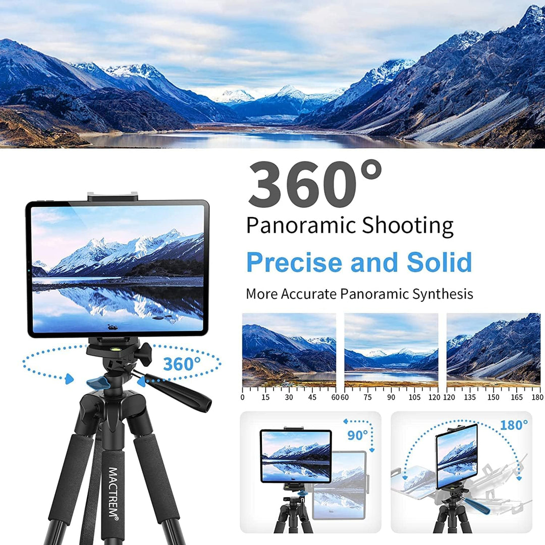 - 【3-in-1-Tablet&Telefonhalter&Kamera】: Das handy stativ ist mit einem Tablet-Telefonhalter ausgestattet. Sie können Ihr Telefon und Ihr Tablet gleichzeitig verwenden. iPhone-Ständer für die Dreharbeiten ist mit allen 5,8-8,5 cm