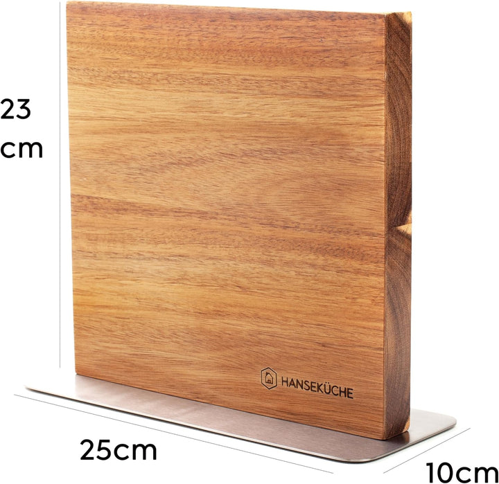- ✅ PRAKTISCHE AUFBEWAHRUNG UND VIEL PLATZ – Mit dem Messerhalter von Hanseküche erhalten Sie eine praktische Aufbewahrungsmöglichkeit. Ihre Küchenmesser und Ihre Klingen werden durch die Aufbewahrung auf dem Akazienholz geschont und bleiben scharf. Mit seiner Grösse von 25 cm x 23 cm bietet der Messerhalter zudem viel Platz für Kochmesser, Brotmesser, Besteck oder Scheren.