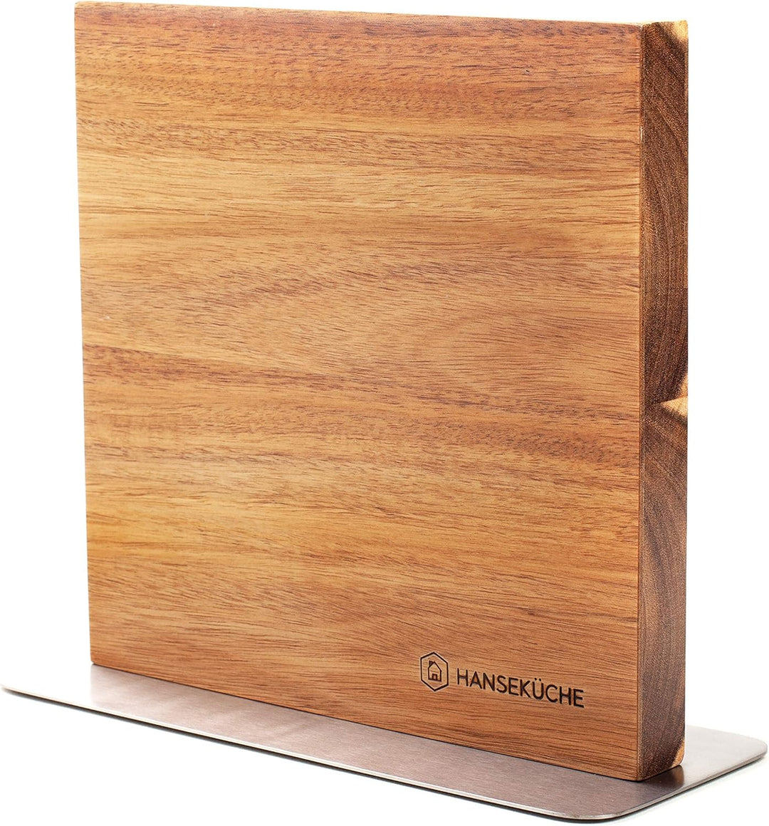- ✅ HOCHWERTIG UND LANGLEBIG – Der Hanseküche Messerhalter ist aus hochwertigen Materialien gefertigt. Insbesondere die Verbindung von edlem Akazienholz und dem Standfuss aus Edelstahl sorgen für eine besondere Kombination in Ihrer Küche. Dank des integrierten Magneten können Sie Ihre Küchenmesser einfach und griffbereit aufbewahren.