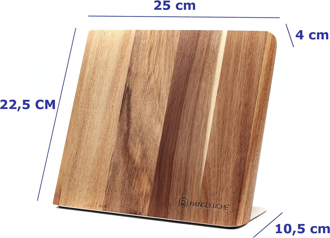 - ✅ PRAKTISCHE AUFBEWAHRUNG MIT VIEL PLATZ – Mit dem Messerhalter von Hanseküche erhalten Sie eine praktische Aufbewahrungsmöglichkeit. Ihre Küchenmesser und Ihre Klingen werden durch die Aufbewahrung auf dem Akazienholz geschont und bleiben scharf. Mit seiner Grösse von 25cm x 23cm bietet der Messerhalter zudem viel Platz für Brotmesser, Besteck oder Scheren.