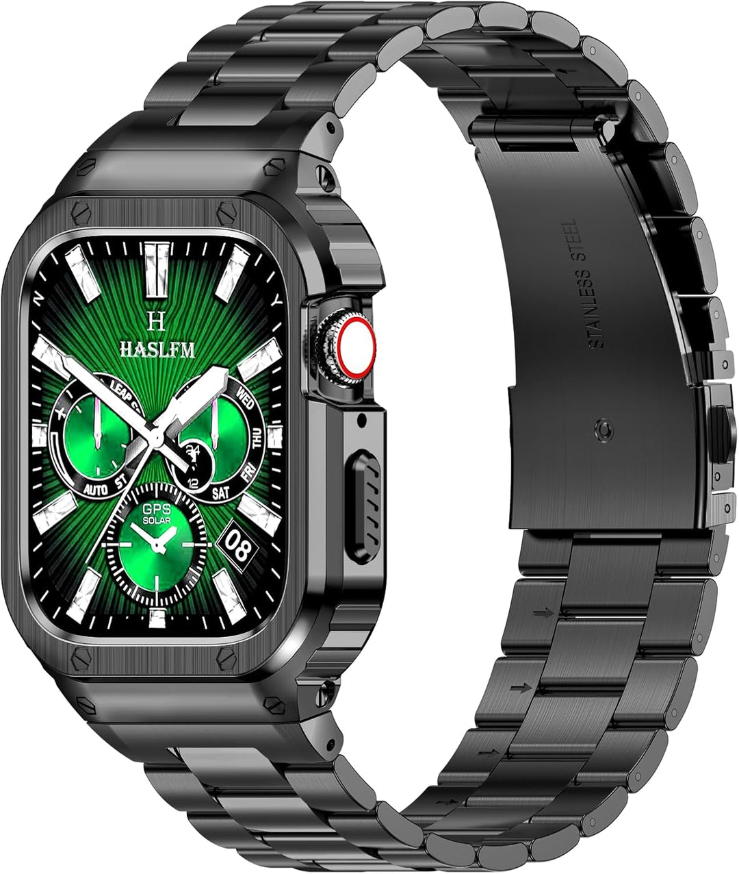 - 【Edelstahl-Metallgehäuse】Das Metall-Apfeluhrband ist poliert und aus hochwertigem Edelstahl gefertigt, viel haltbarer und robuster. Bereitstellung von Schutzabdeckung gegen Stösse und Kratzer. Der stossfeste Apple Watch Fall kann genau mit allen