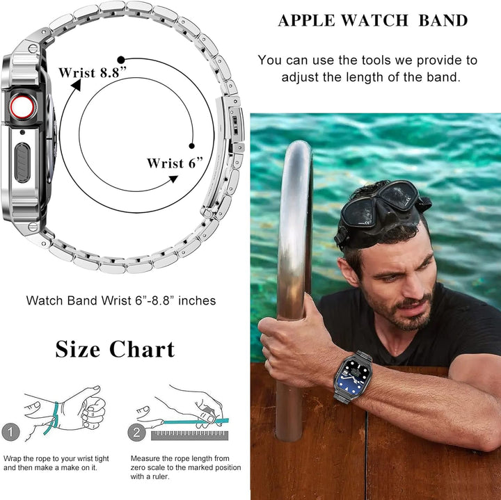 - 【Kompatibilität】Die Edelstahl Apple Watch Bänder mit Fall passen für Apple Watch Series 6/5/4/SE/3/2/1(44mm/42mm), bitte wählen Sie die richtigen Grössen für Ihre Uhr. Mit exquisiten Aussehen Design, die Apple Watch Cover sieht klassisch,