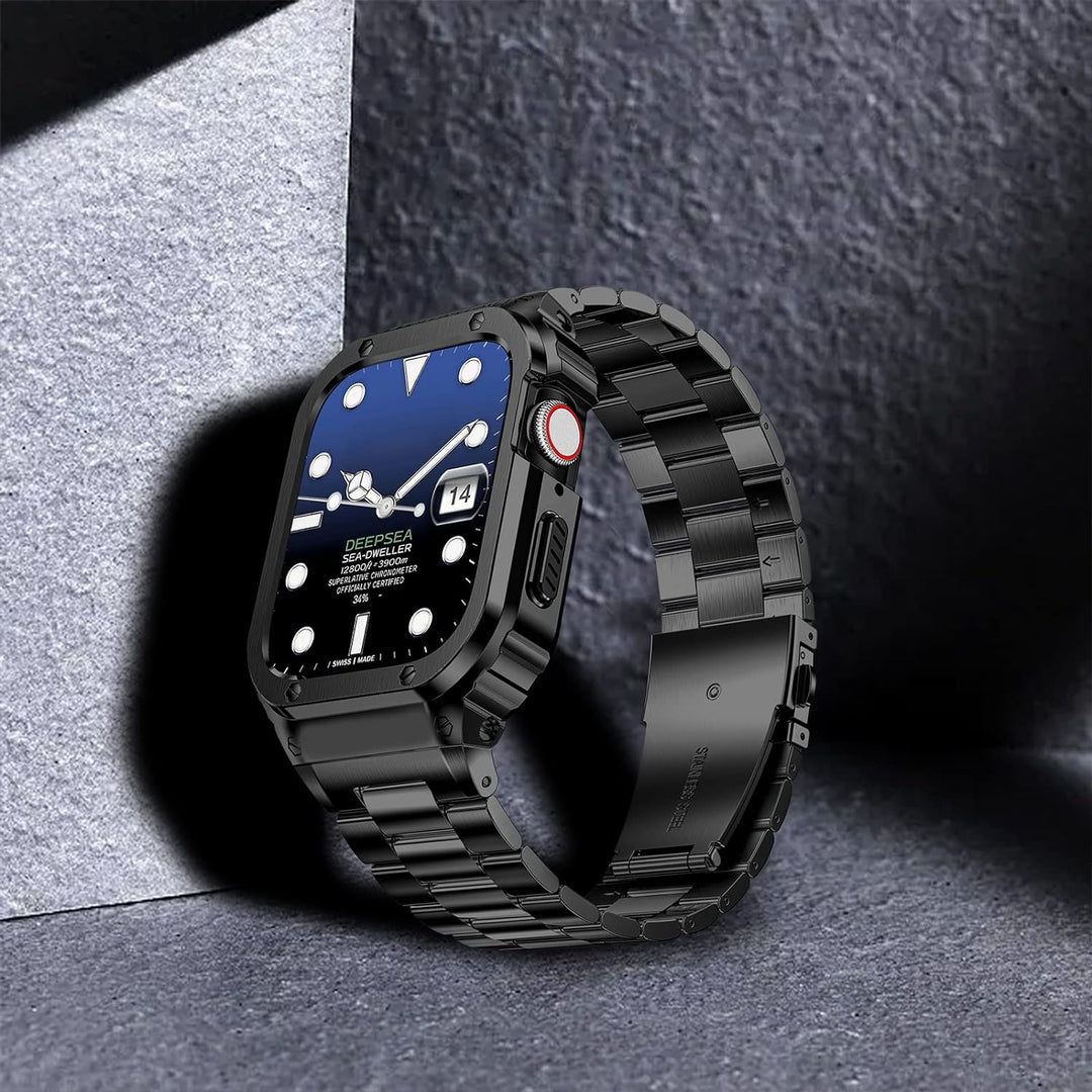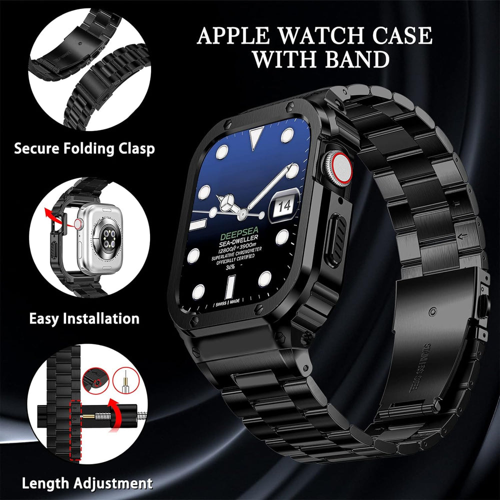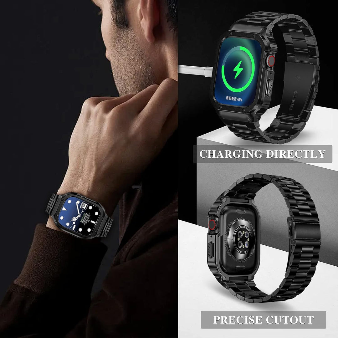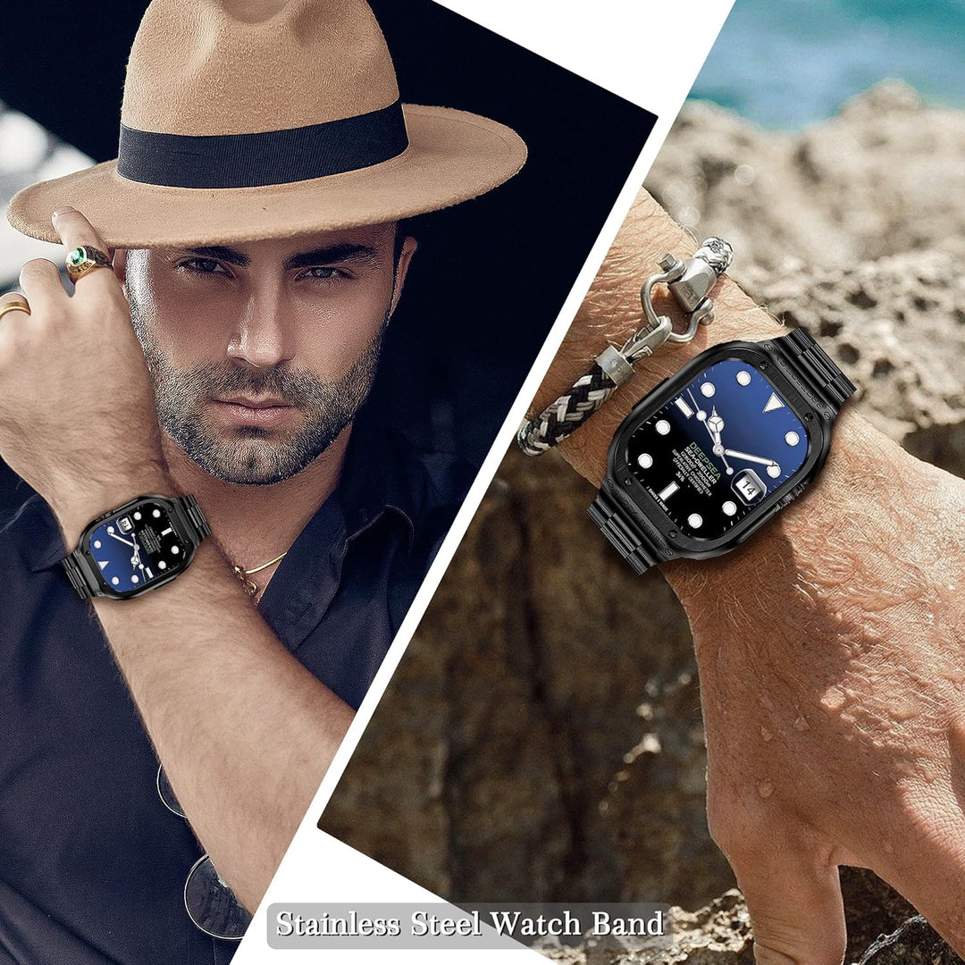 - 【Kompatibilität】Die Edelstahl Apple Watch Bänder mit Gehäuse passen für Apple Watch Series 9/8/7/6/5/4/SE/3/2/1(41mm/40mm/38mm), bitte wählen Sie die richtigen Grössen für Ihre Uhr. Mit exquisitem Aussehen Design, die Apple Watch Cover sieht