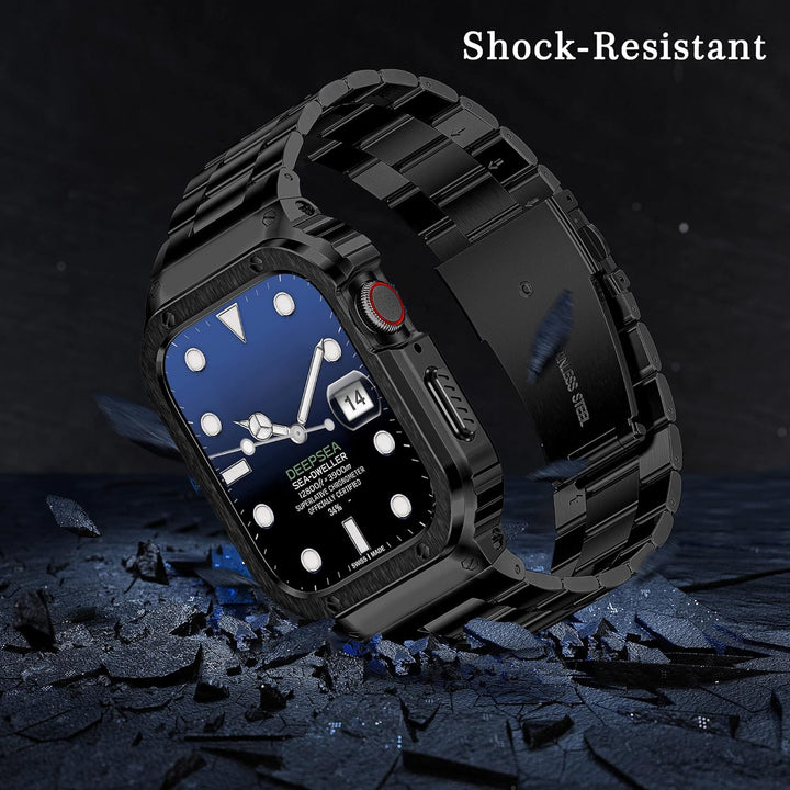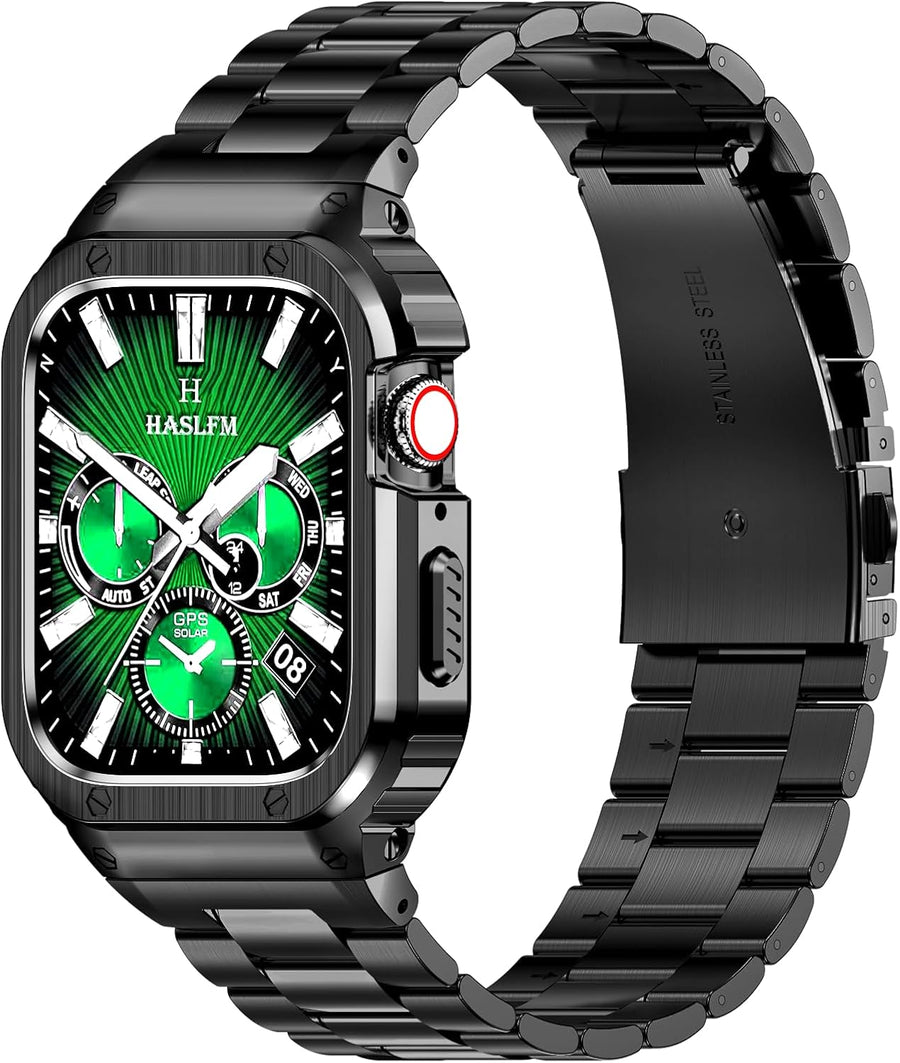 - 【Edelstahl-Metallgehäuse】Das Metall-Apfeluhrband ist poliert und aus hochwertigem Edelstahl gefertigt, viel haltbarer und robuster. Bereitstellung von Schutzabdeckung gegen Stösse und Kratzer. Der stossfeste Apple Watch Fall kann genau mit allen