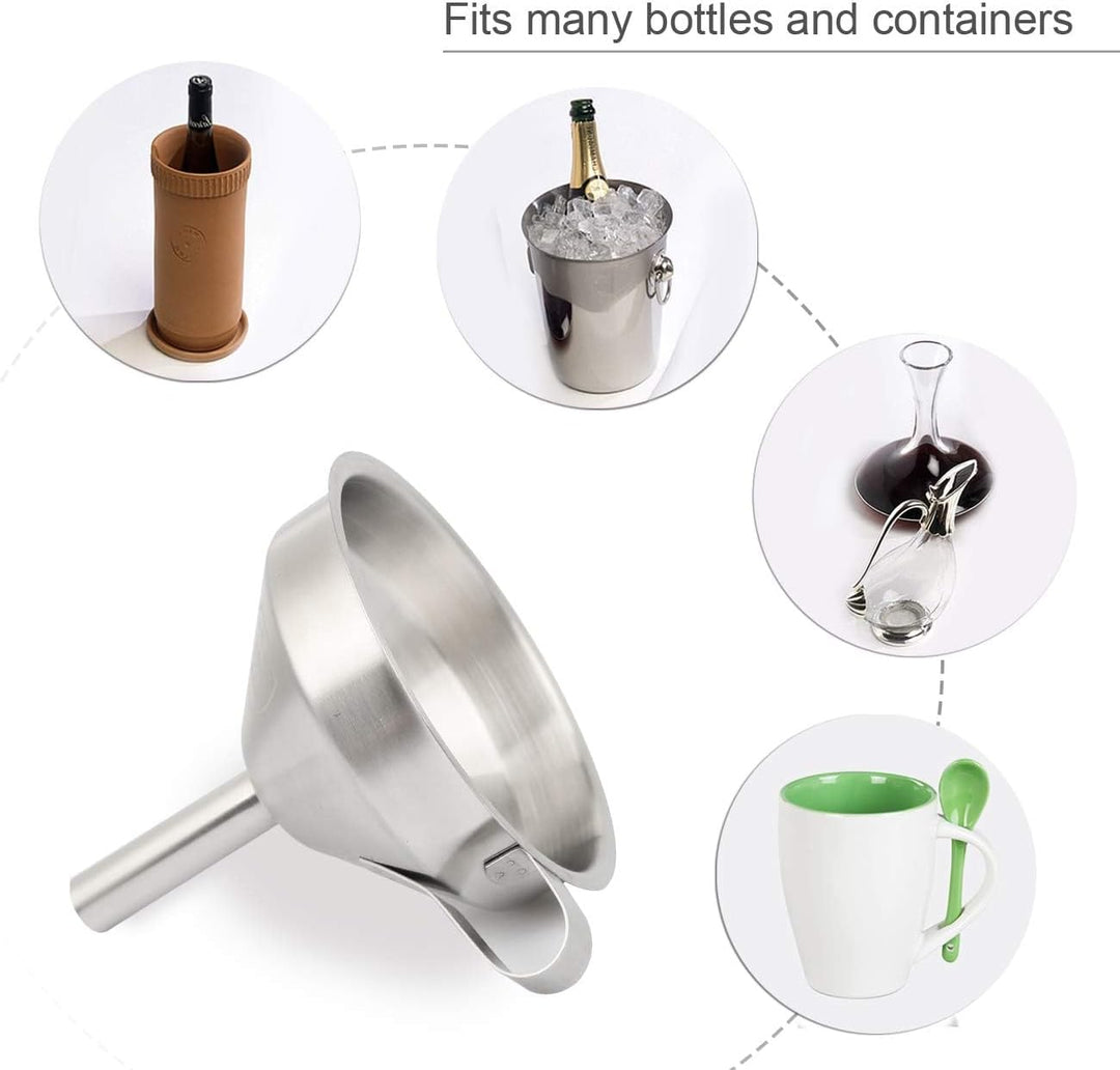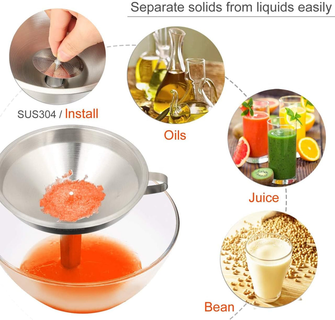 - EINFACH ZU BENUTZEN: Der Trichter set ist perfekt für schnellen und genauen Transport der Flüssigkeiten. Es kann auch benutzt werden, um trockene Zutaten wie Mehl, Salz, Zucker, Gewürzen usw. zu sieben. Trichter aus rostfreiem Stahl hat einen