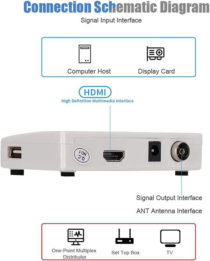 - 【WEIT VERWENDET】 Der HF-Adapter für Fernseher hat eine breite Kompatibilität, diese Konverterbox unterstützt den Anschluss der meisten Geräte. Inzwischen hat der Videomodulator ein leichtes -Aussehen, ist einfach zu installieren und nimmt nicht