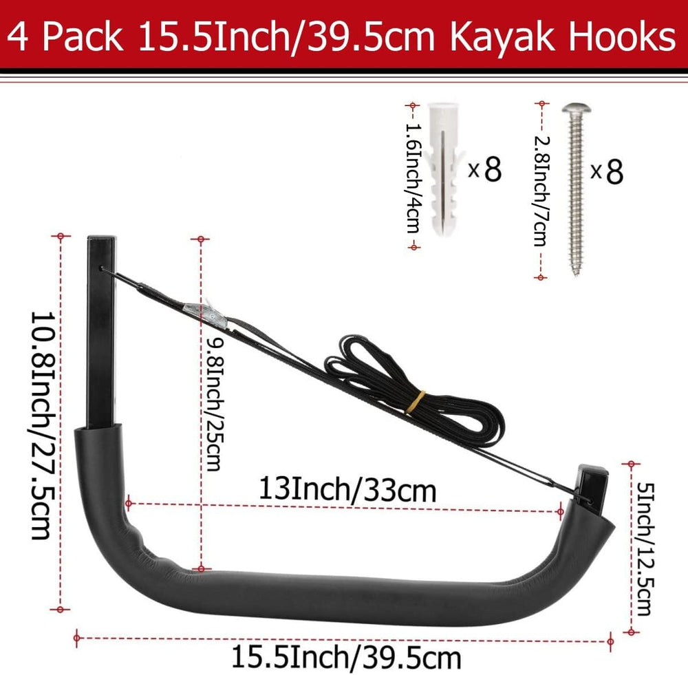 - 【68 KG TRAGFÄHIGKEIT】 38 cm Garagenaufbewahrungshaken können eine Vielzahl von grossen Werkzeugen aufnehmen, die für die Aufbewahrung grosser Gegenstände wie Kajak, Kanus, SUP, Snowboard, Skateboard, Surfbrett, Holz geeignet sind, was praktisch