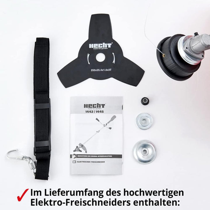 - [WICHTIG] - Elektrische Freischneider sind aufgrund der technischen Beschaffenheit NICHT für die Verwendung von Draht-Unkrautbürsten geeignet. Nutzen Sie im Einsatz nur das mitgelieferte Hecht Zubehör