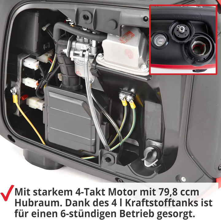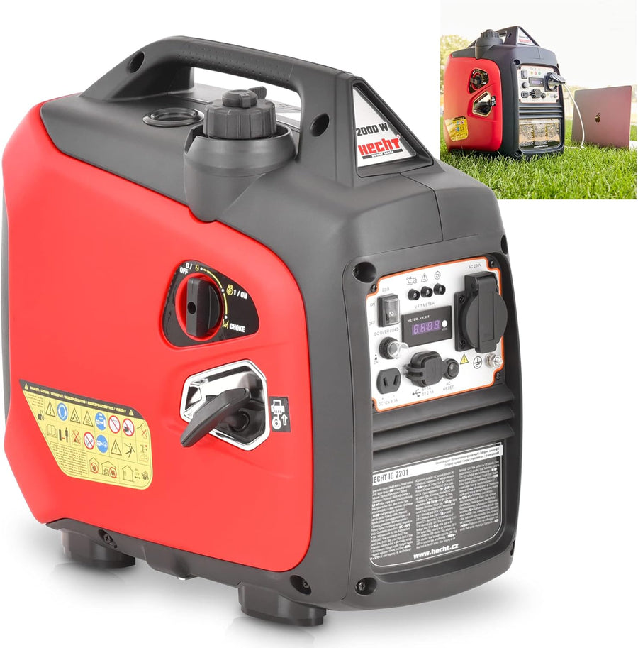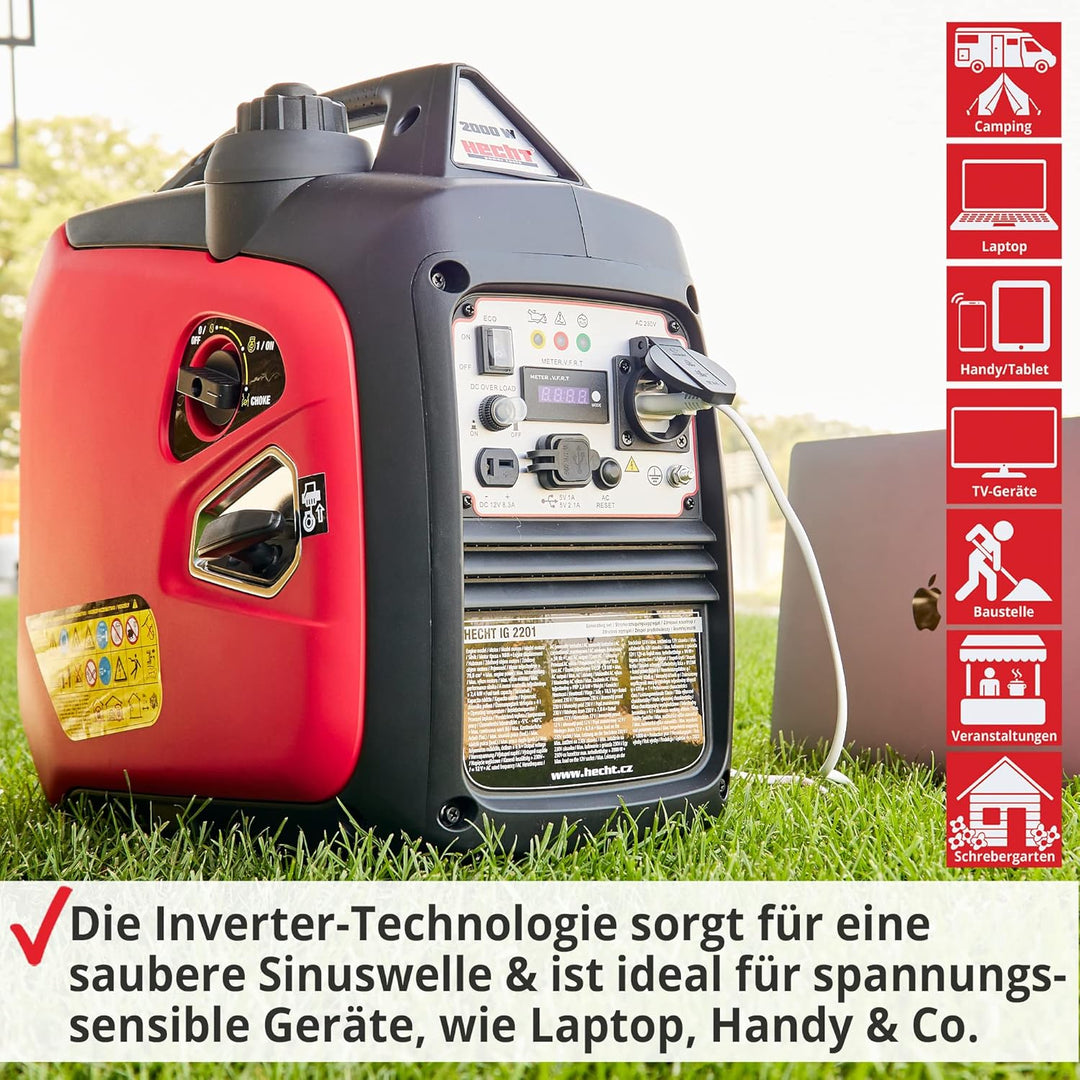 HECHT Inverter 2000 Watt Stromerzeuger Notstromaggregat – 4 Liter Benzin Tank – 6 Stunden Laufzeit –
