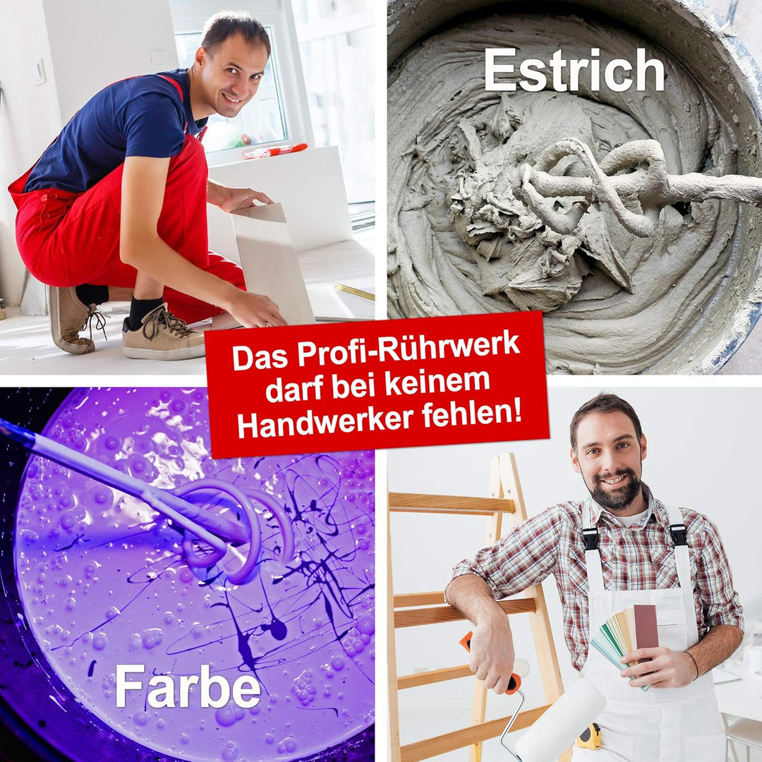• VIELSEITIG: Hochwertiges Rührgerät zum Anmischen dickflüssiger Materialien wie z.B. Beton, Farbe, Putz, Estrich, Mörtel, Zement, Betonestrich, Estrichbeton, Fliesenkleber oder Ausgleichsmasse Rührwerk