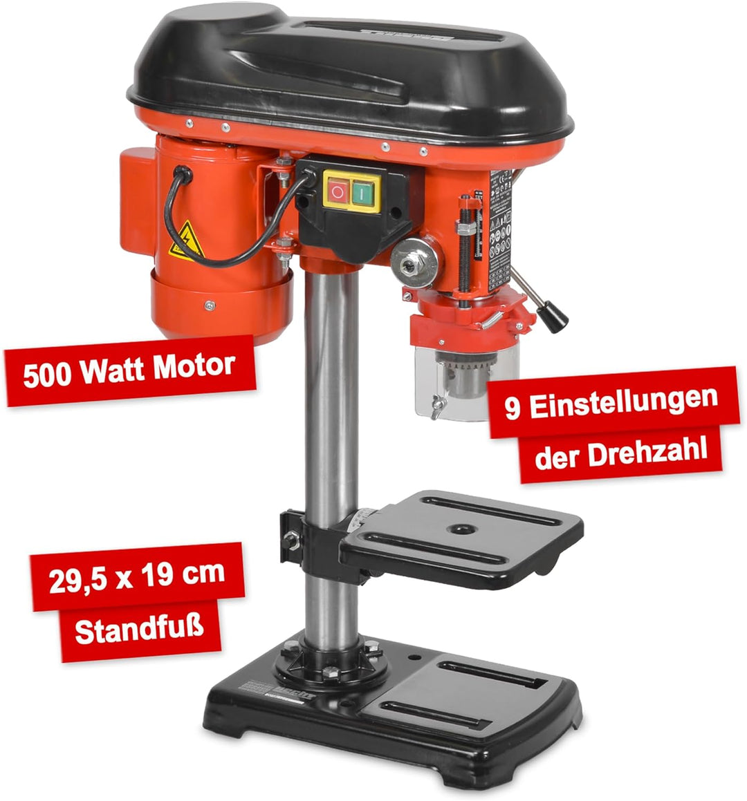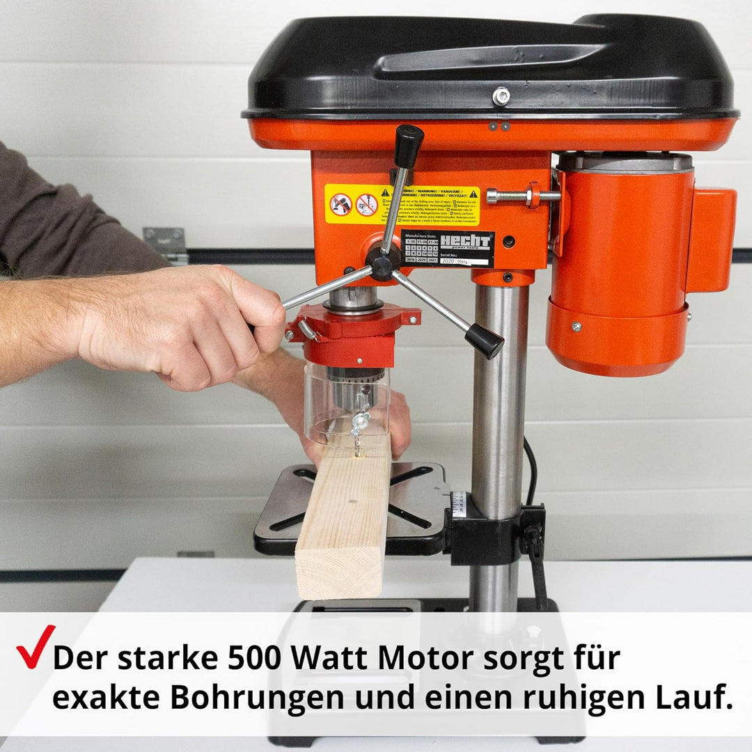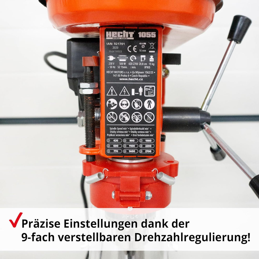 Hecht Standbohrmaschine, Säulenbohrmaschine mit starken 550 Watt – 9-stufige Dreh-zahlregelung, dreh
