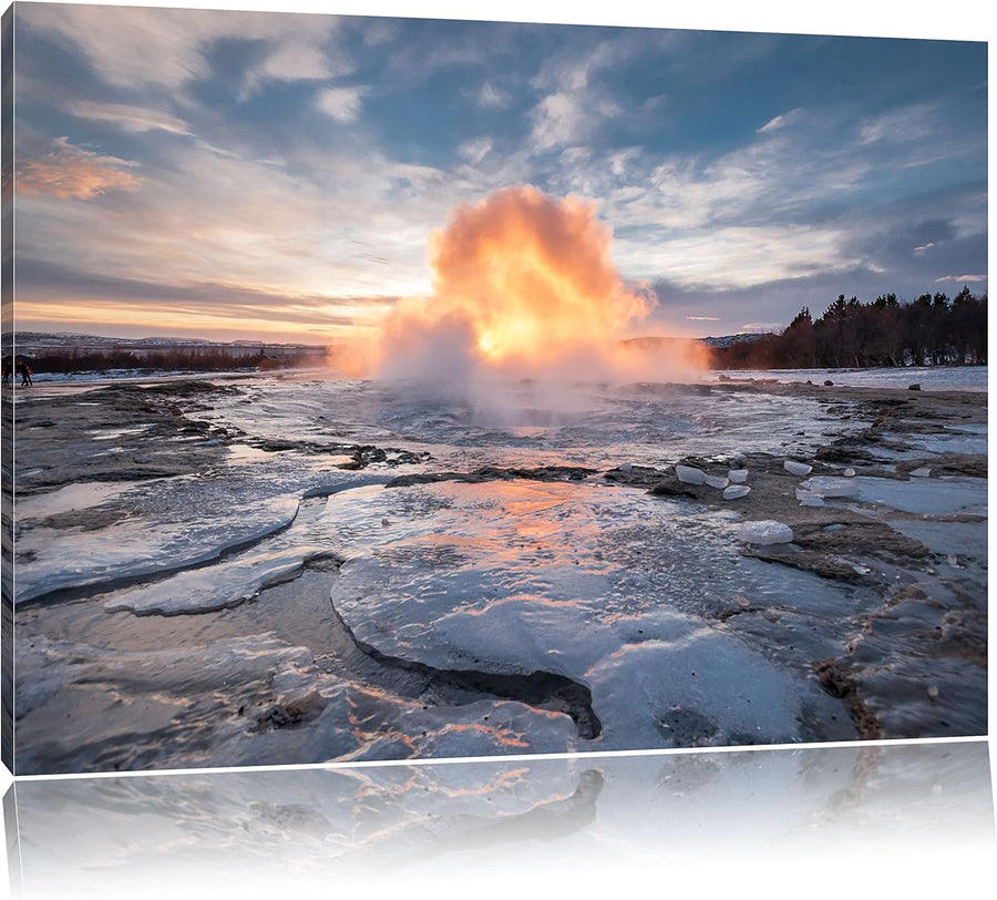 Heisse Quelle in Island, Format: 100x70 auf Leinwand, XXL riesige Bilder fertig gerahmt mit Keilrahm