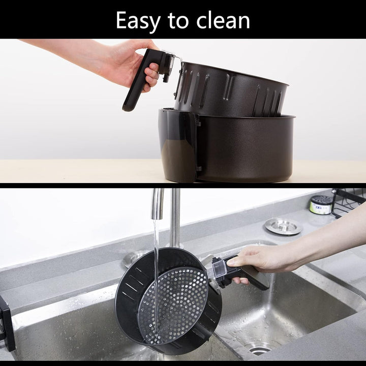 - Einfach zu reinigen und verwenden: Gesundes und leckeres Essen ist so einfach wie ein Knopfdruck. Der Antihaftkorb ist spülmaschinenfest und leicht mit warmem Wasser und Seife zu reinigen. Die einfache Bedienung macht diese Heissluftfritteuse touch ohne öl und fett ideal für Ihren Vater, Ihre Mutter, Ihren Liebhaber und Ihre Freunde